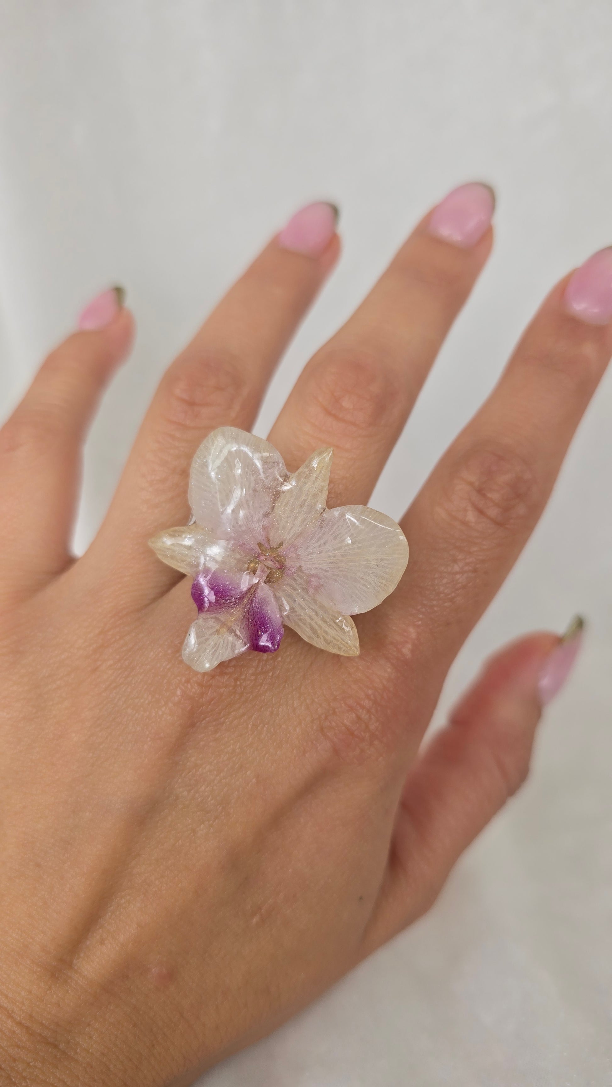 Anillo con orquídea dendrobium real.