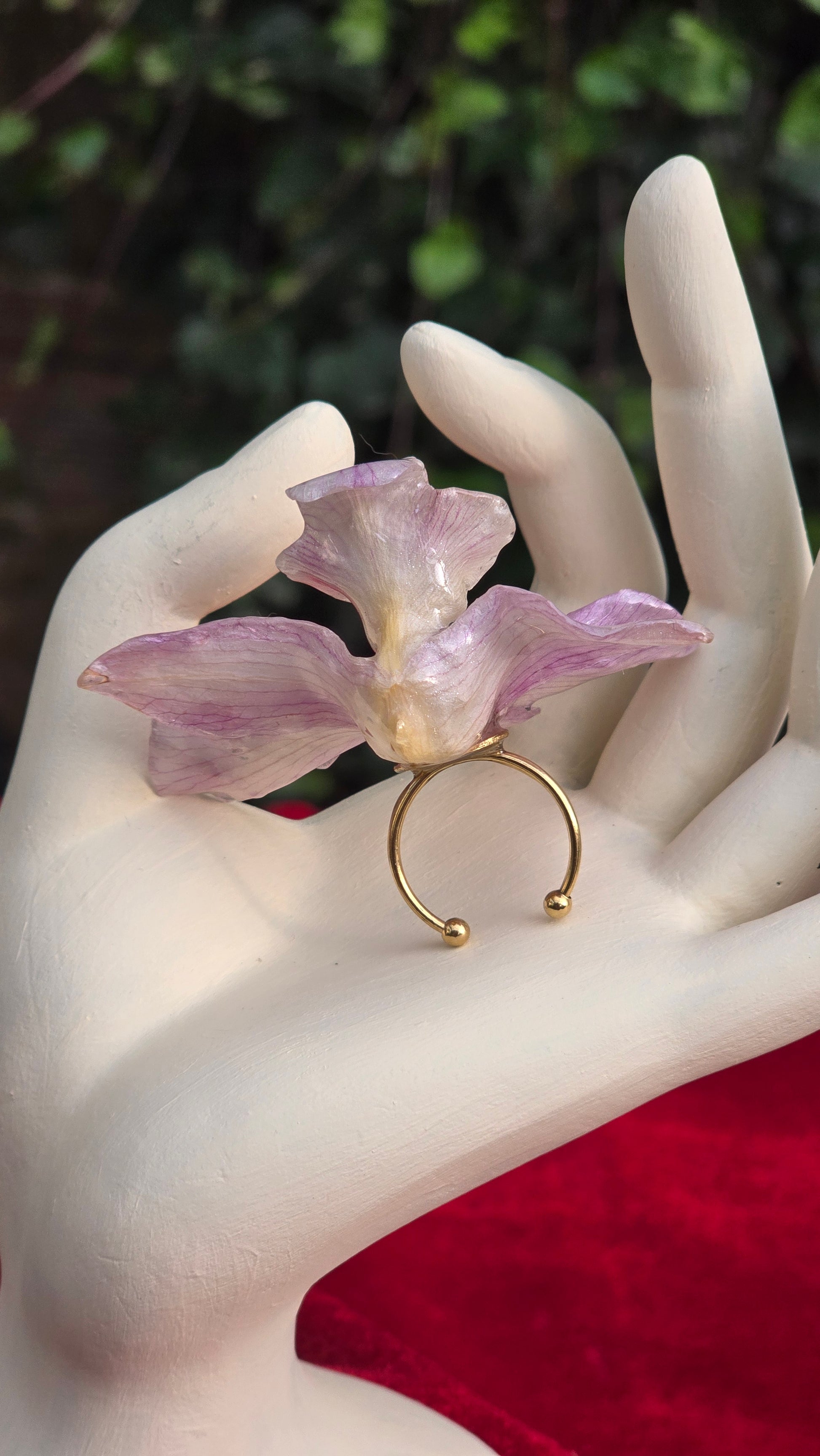 Dimensiones de la flor de 5,7 cm de alto por 6,5 cm de ancho y un peso de 9 gramos aproximadamente, anillo graduable.