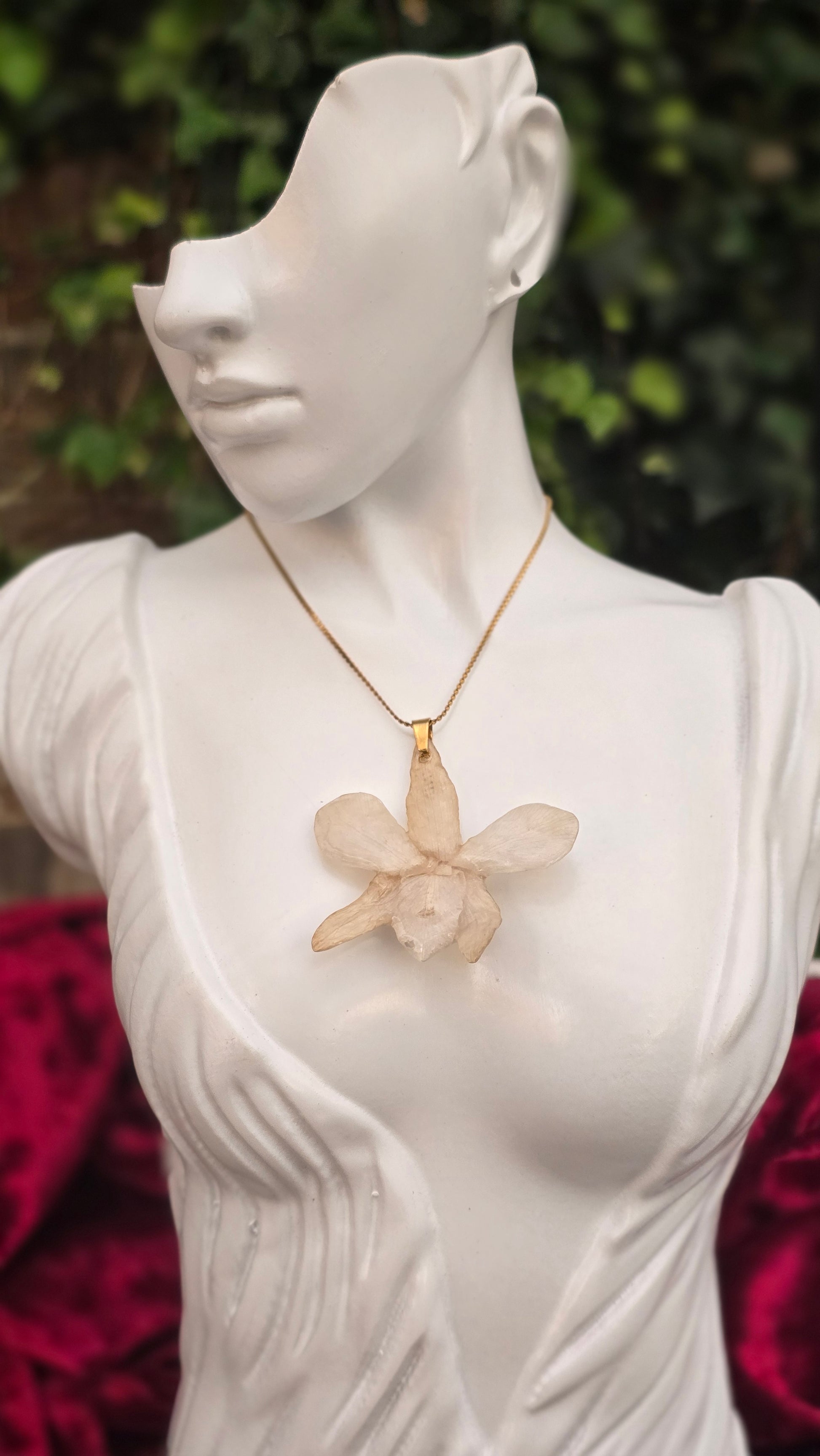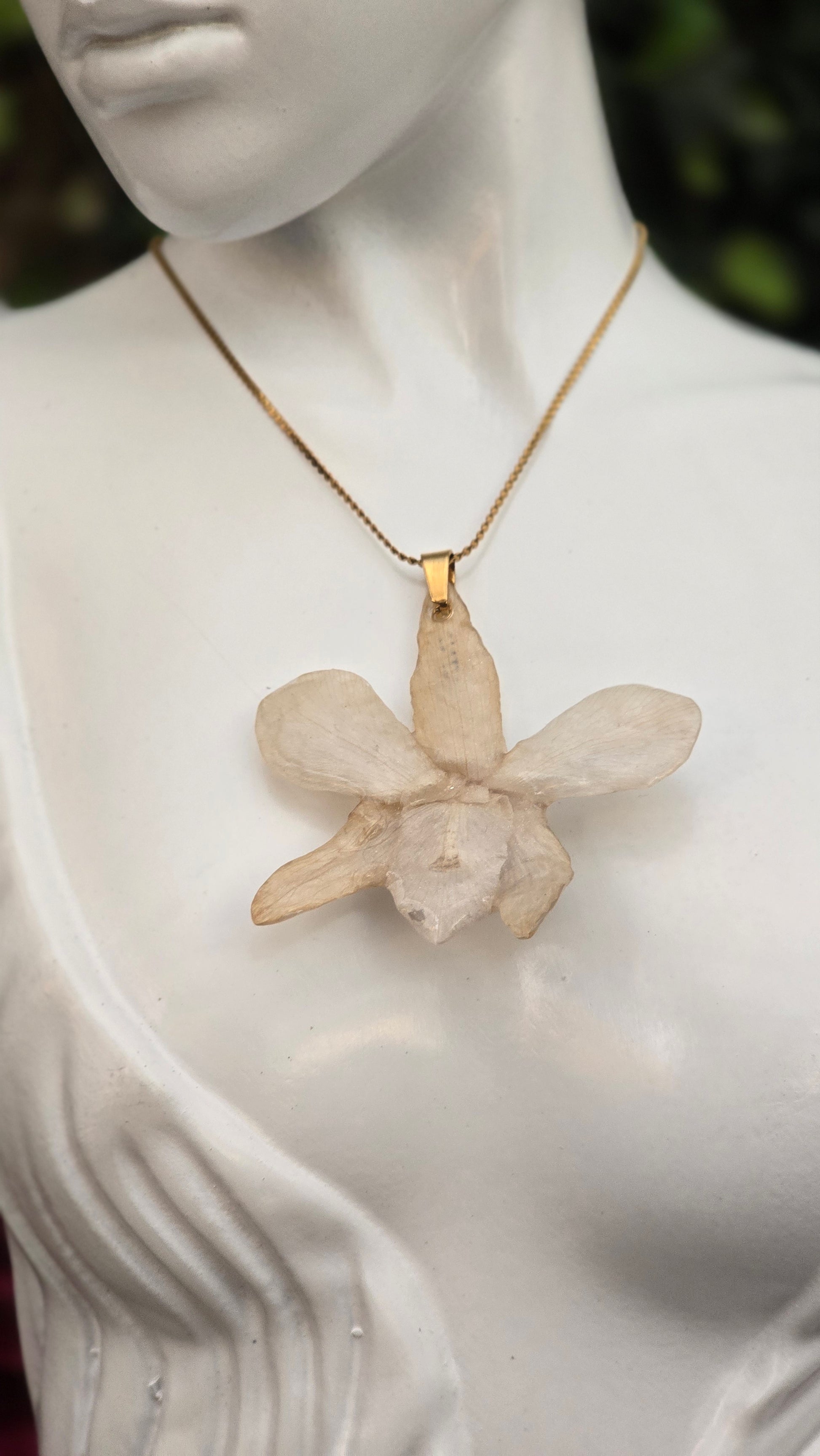 Dimensiones de la flor de 5,5 cm de alto por 5,5 cm de ancho y un peso de 6 gramos (cadena y flor) aproximadamente, medidas de la cadena 45 cm de largo.