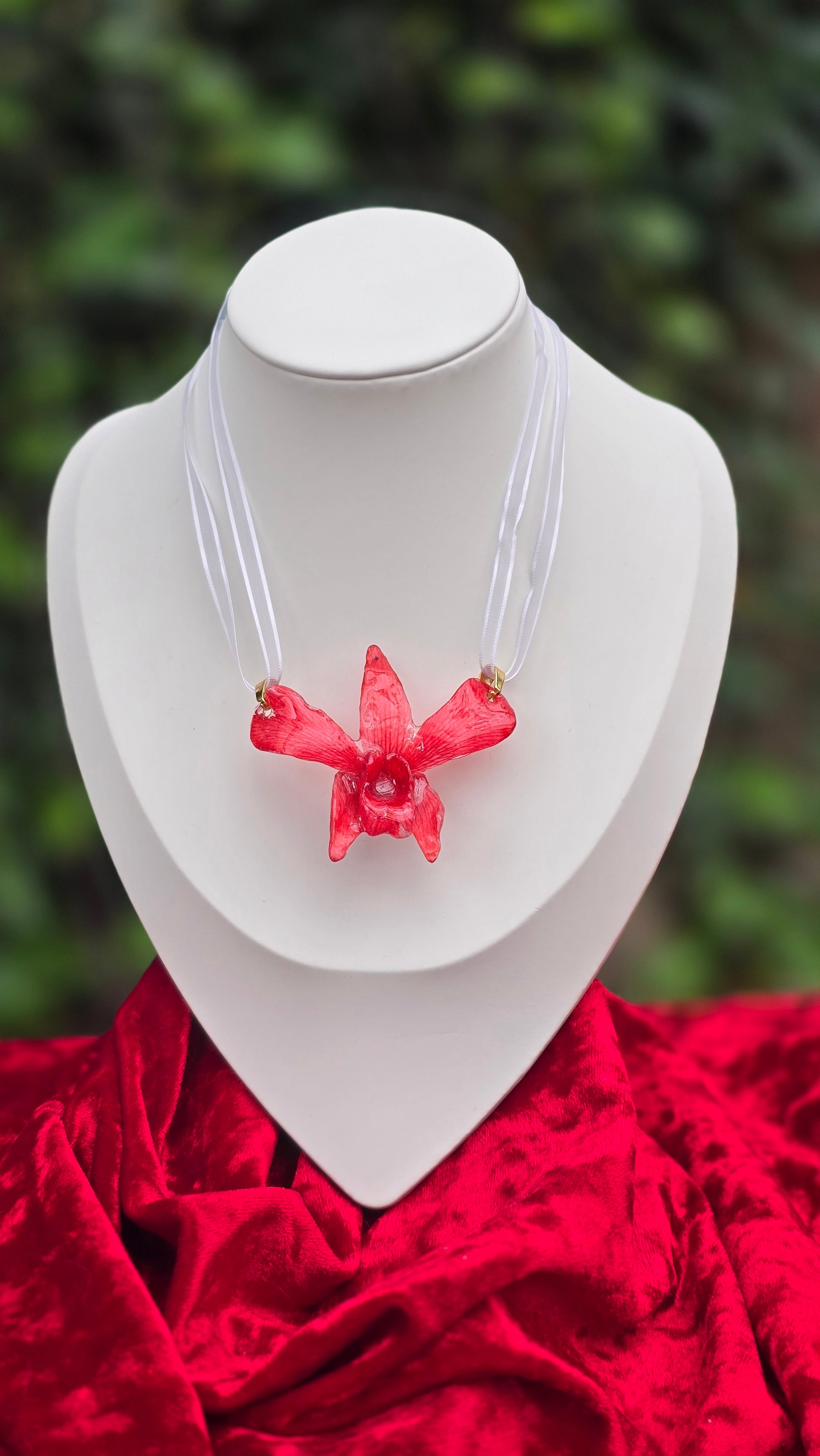 Dimensiones de la flor de 5 cm de alto por 6 cm de ancho y un peso de 5 gramos (tela y flor) aproximadamente, la tela es ajustable tipo gargantilla.