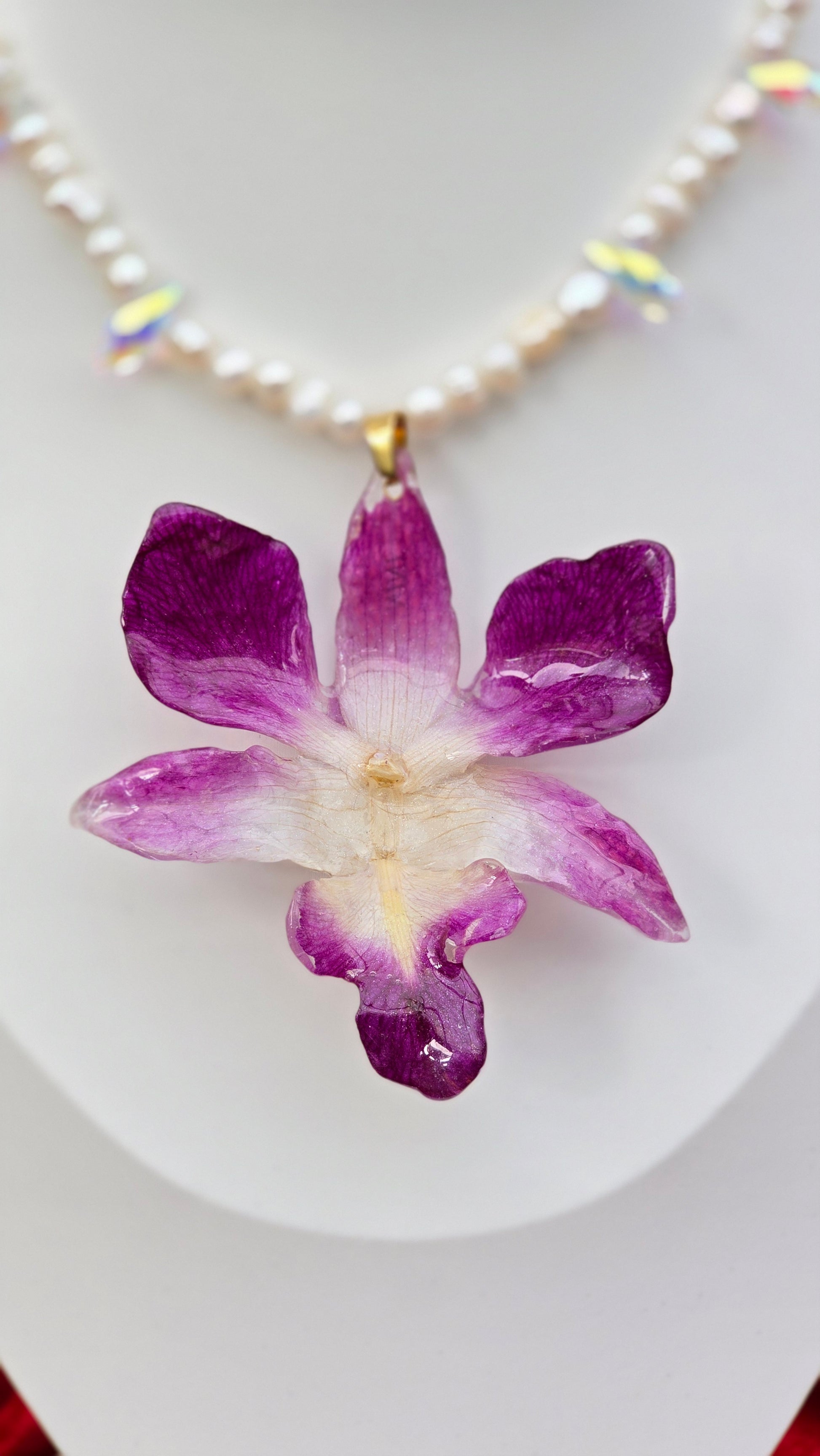 Collar con Orquídea Dendrobium real.