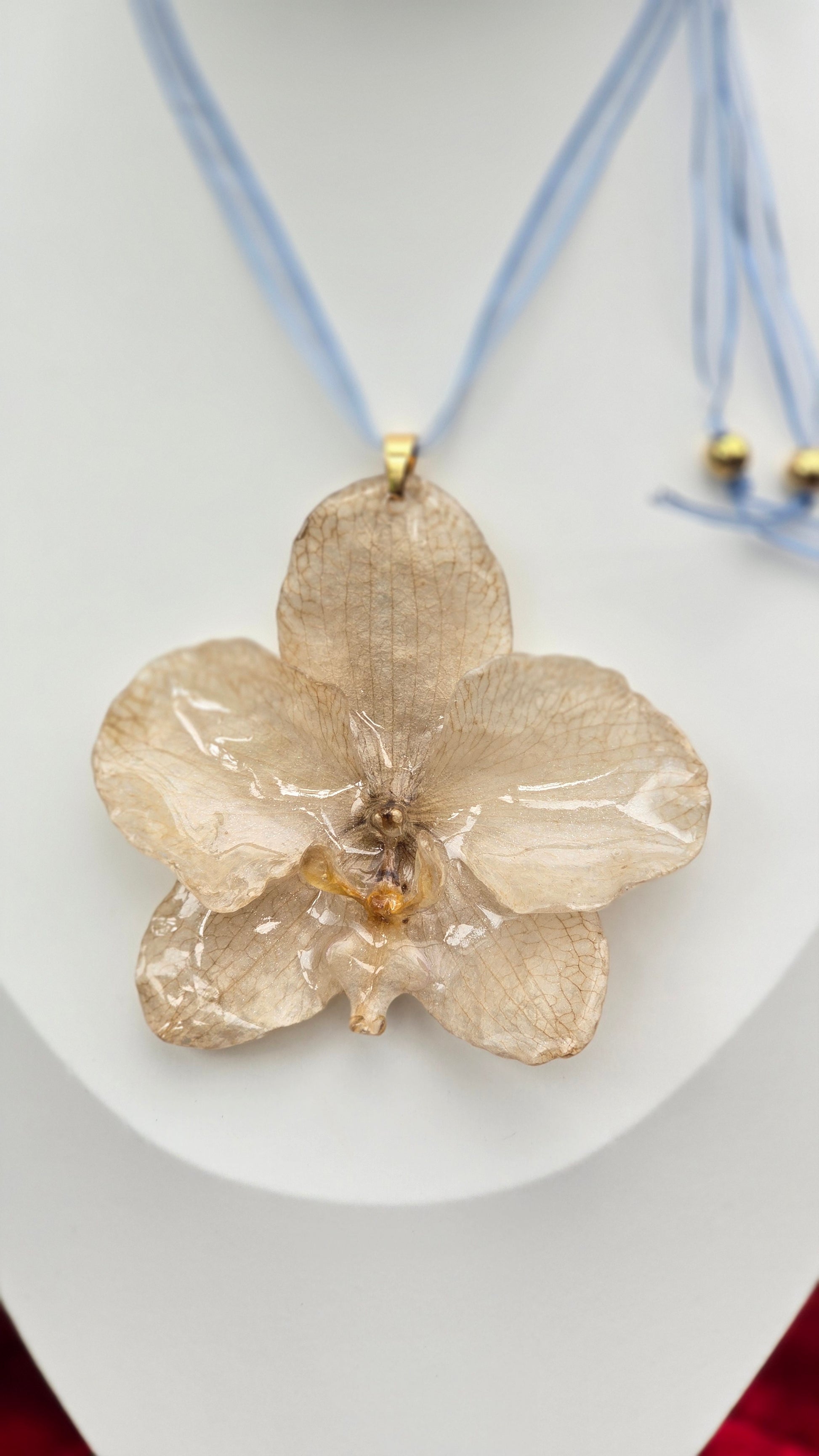 Dimensiones de la flor de 7.5 cm de alto por 8 cm de ancho y un peso de 12 gramos (cadena y flor) aproximadamente.