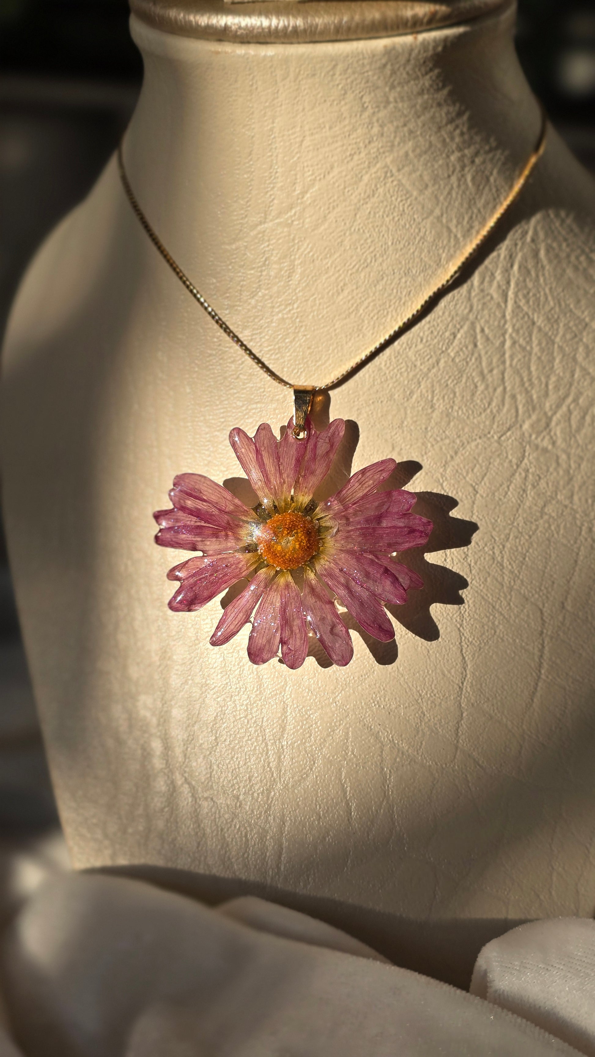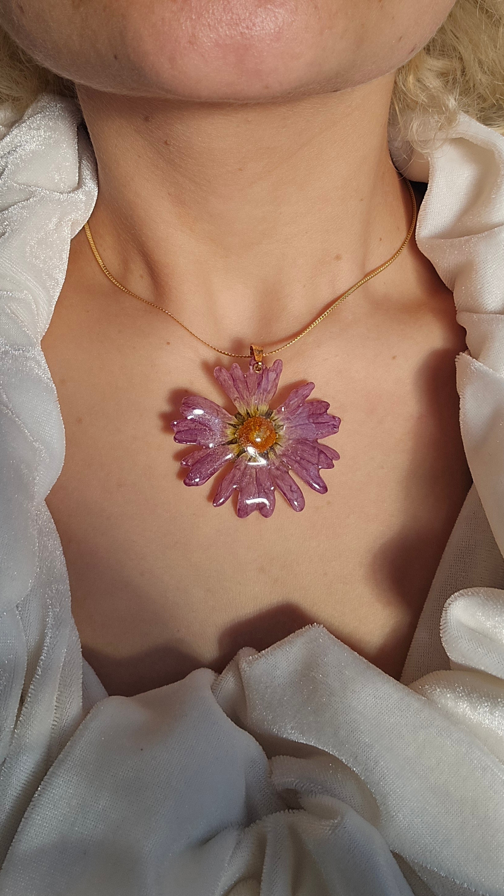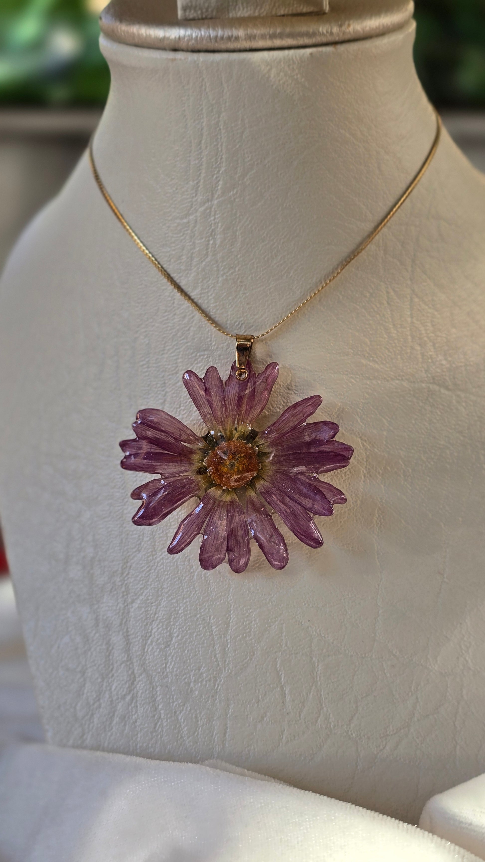 Dimensiones de la flor de 5 cm de alto por 5 cm de ancho y un peso de 8 gramos (cadena y flor) aproximadamente, medidas de la cadena 45 cm de largo.