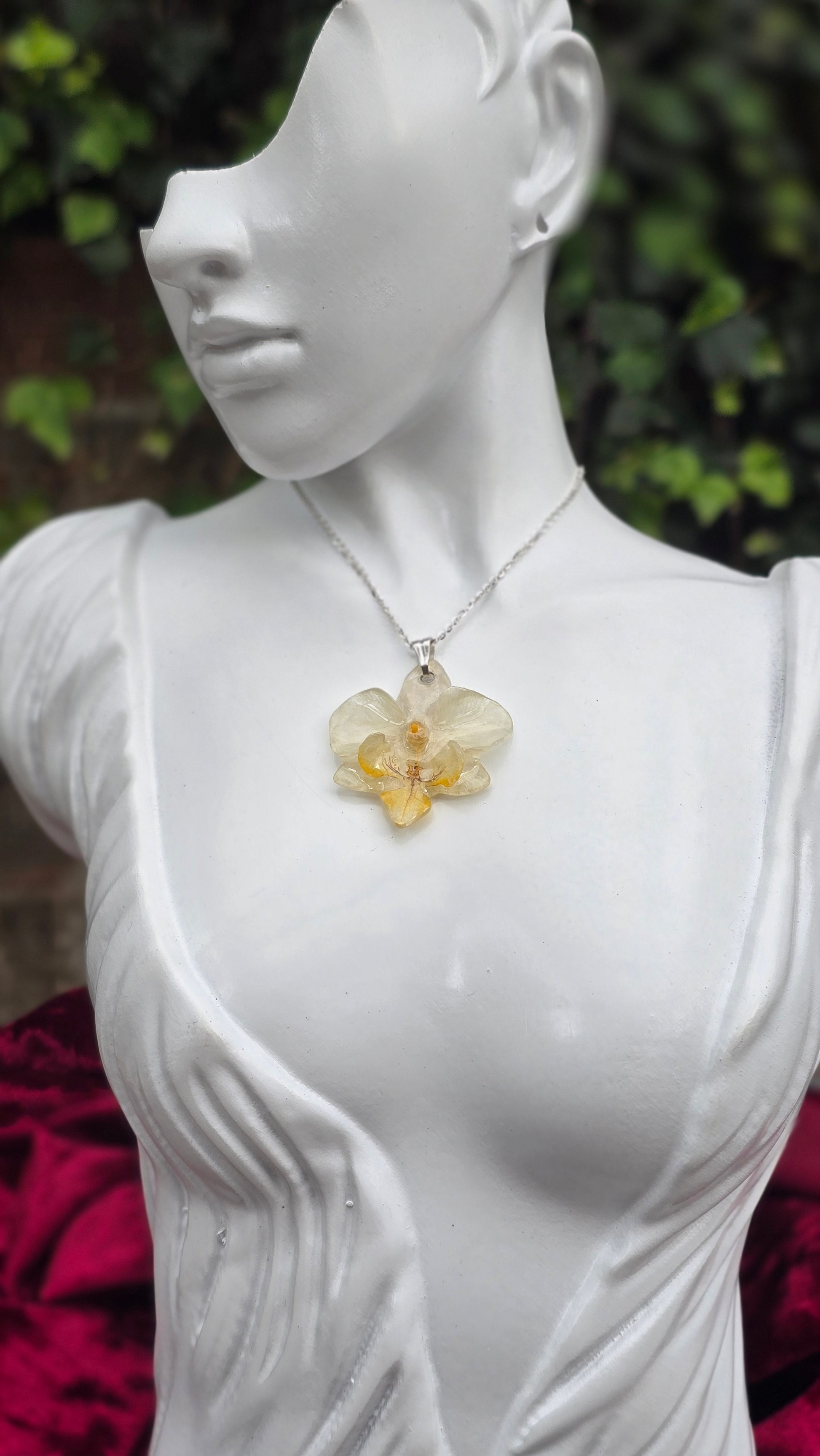 Dimensiones de la flor de 4 cm de alto por 3.5 cm de ancho y un peso de 4 gramos (cadena y flor) aproximadamente, medidas de la cadena 47 cm de largo.