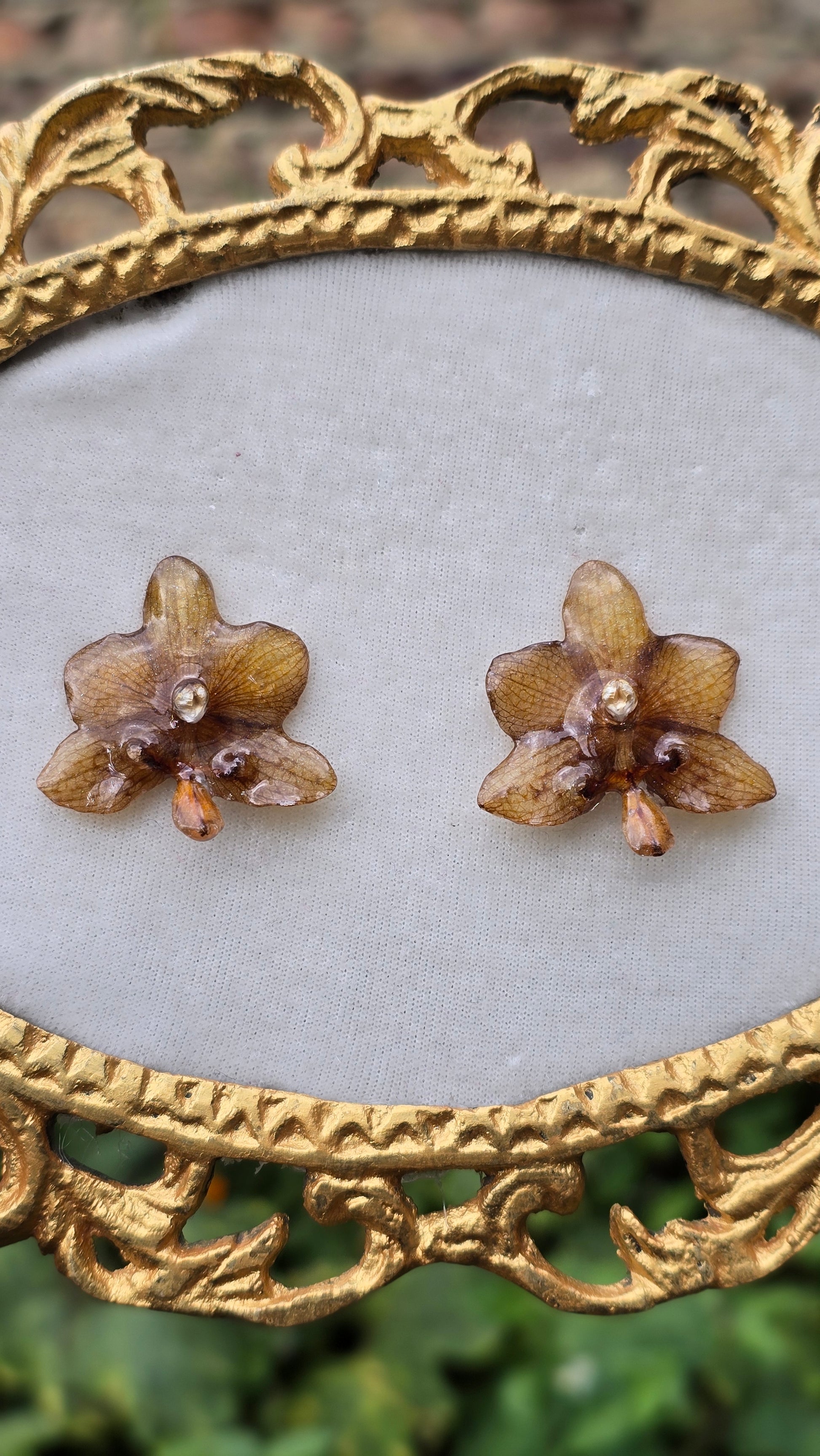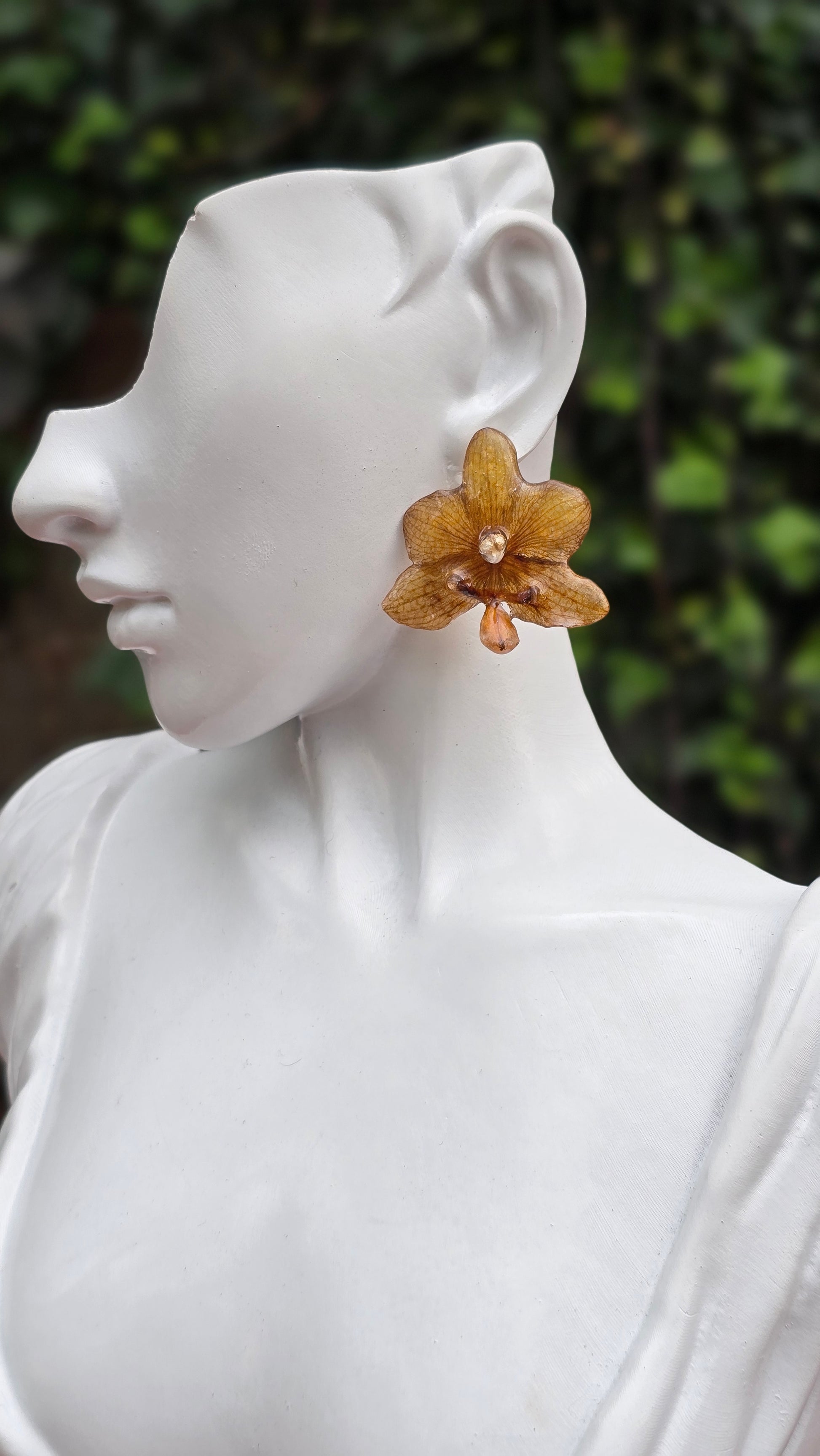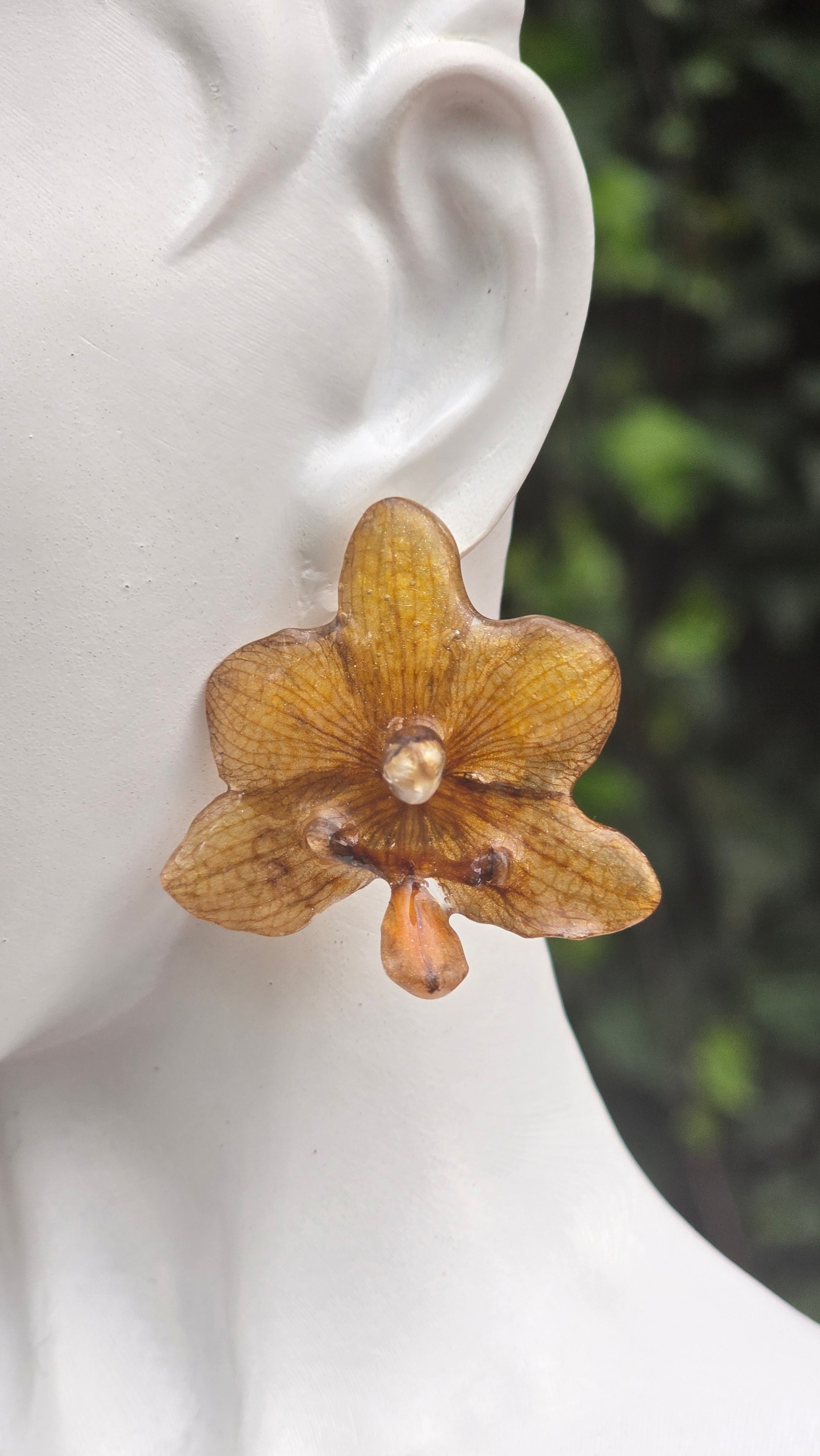 Aretes topitos con Orquídeas Phalaenopsis reales.