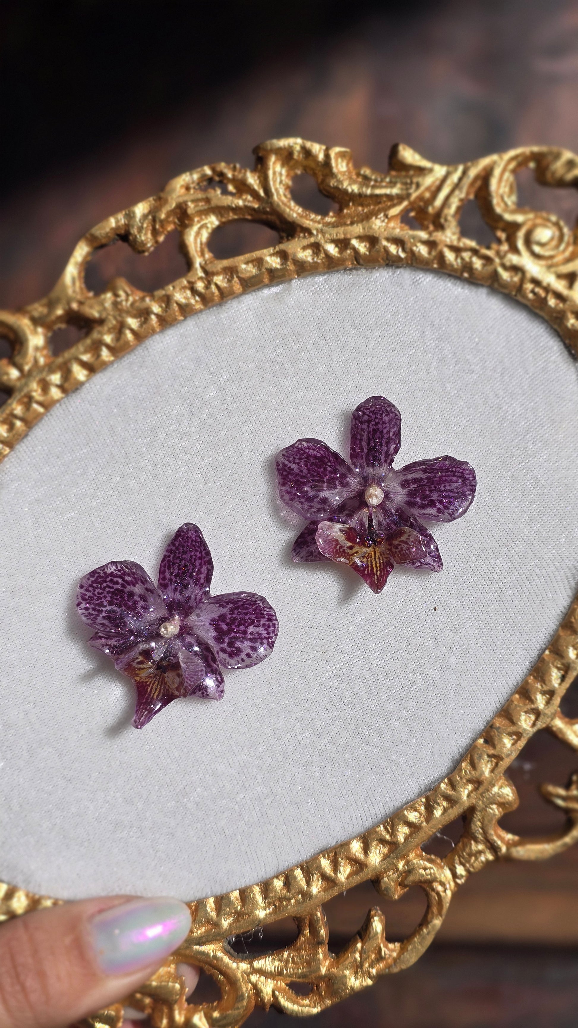 Aretes con Orquídeas Phanelopsis reales.