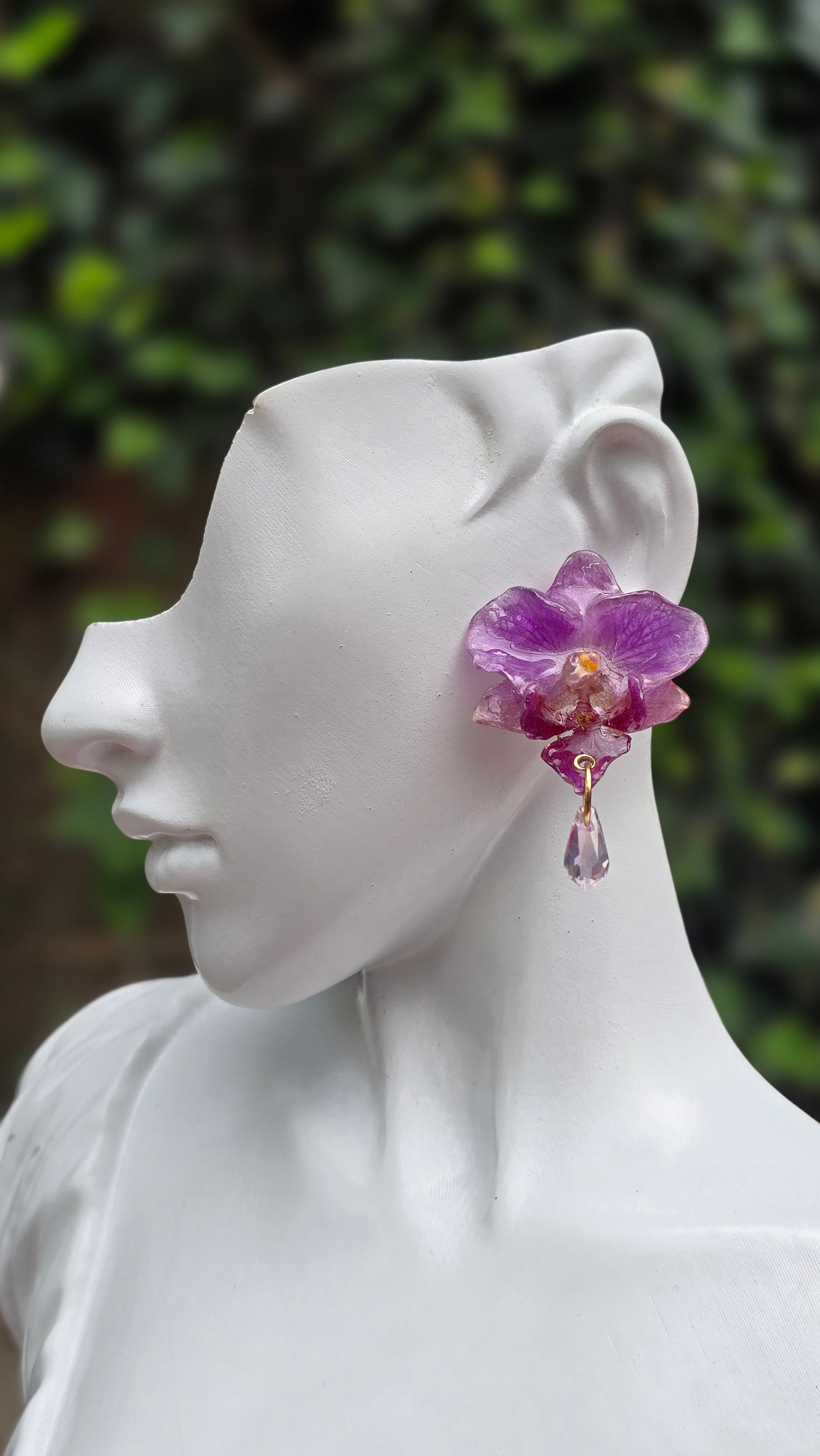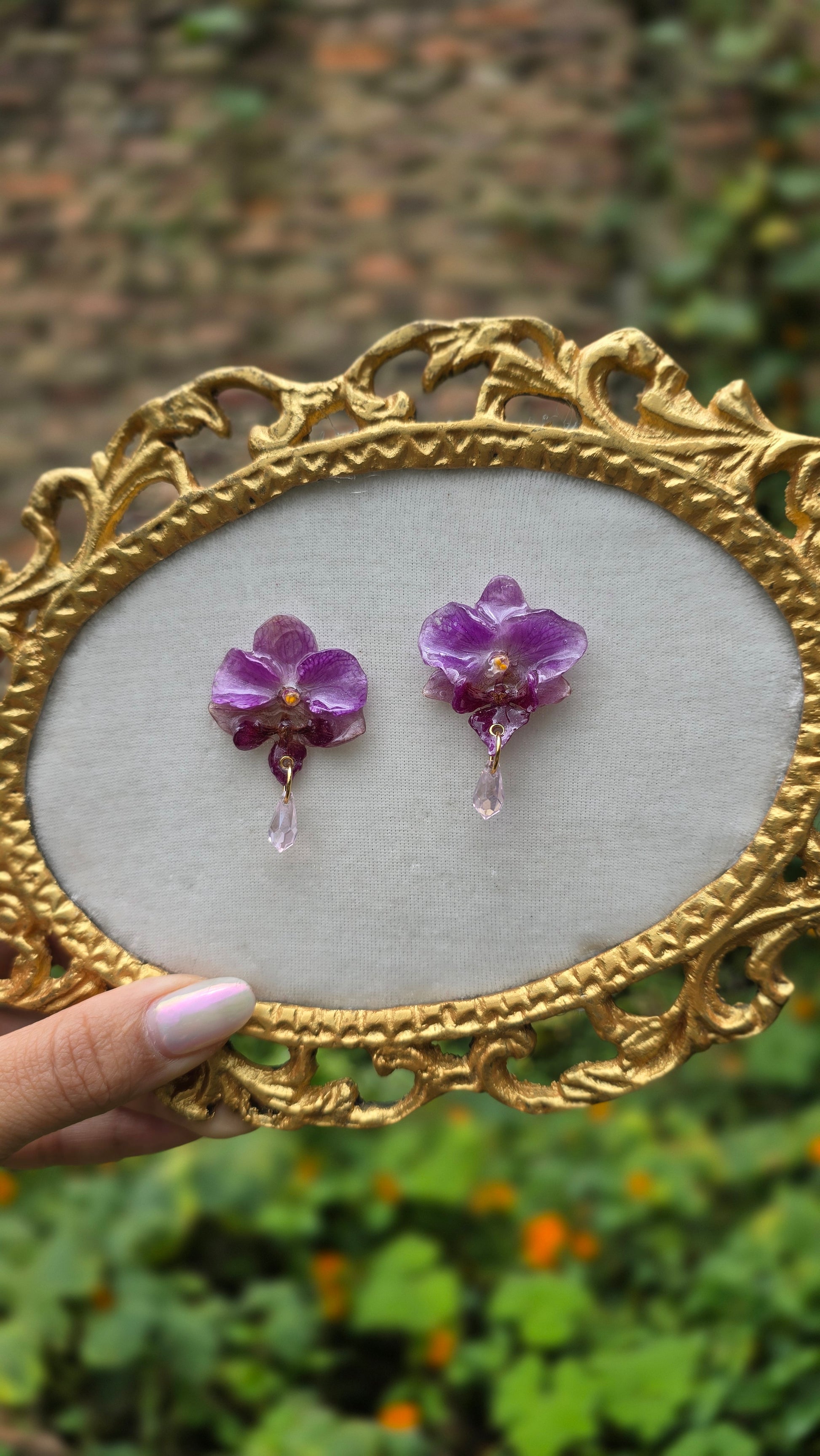 Aretes topitos con Orquídeas Phanelopsis reales.