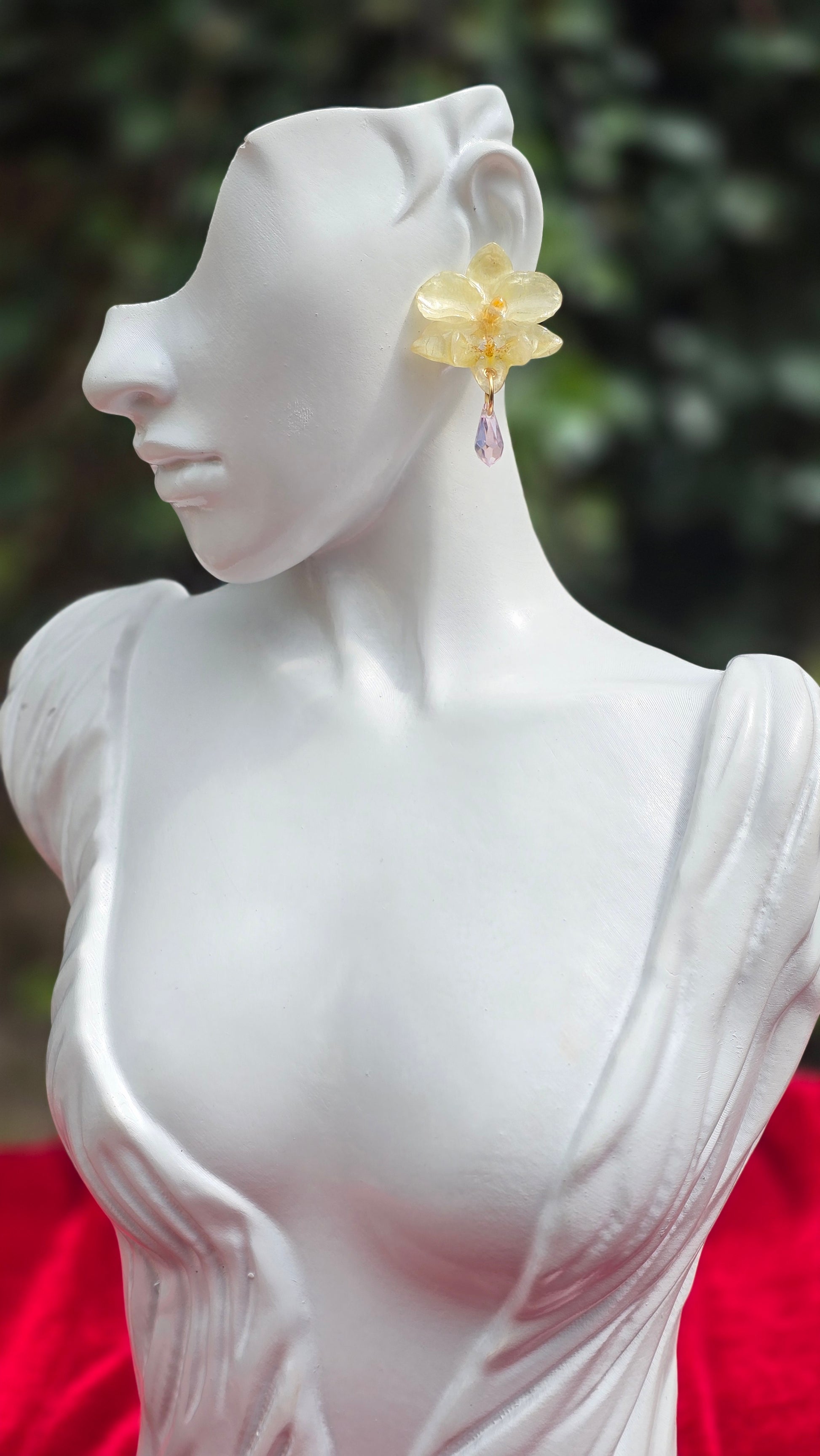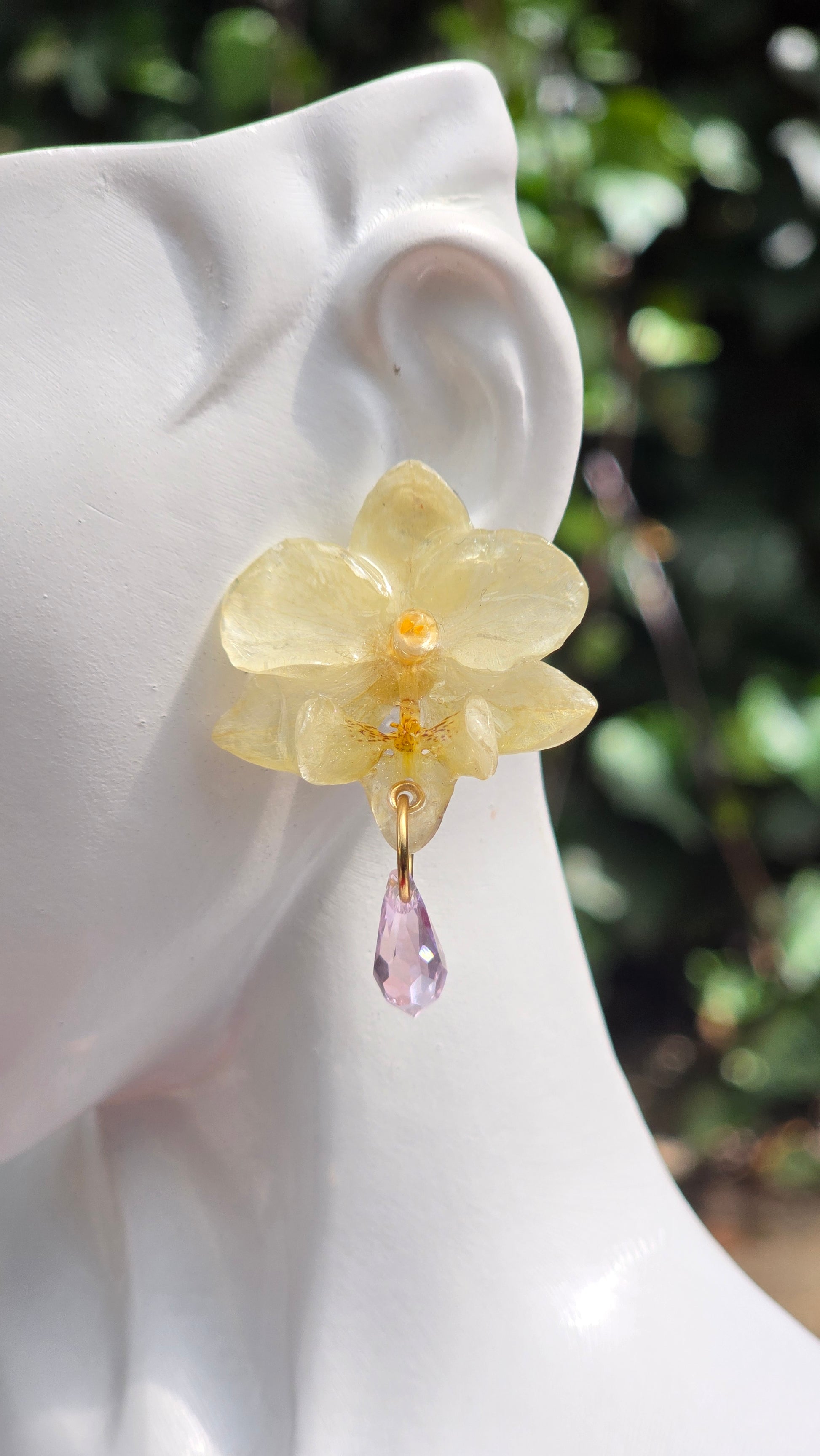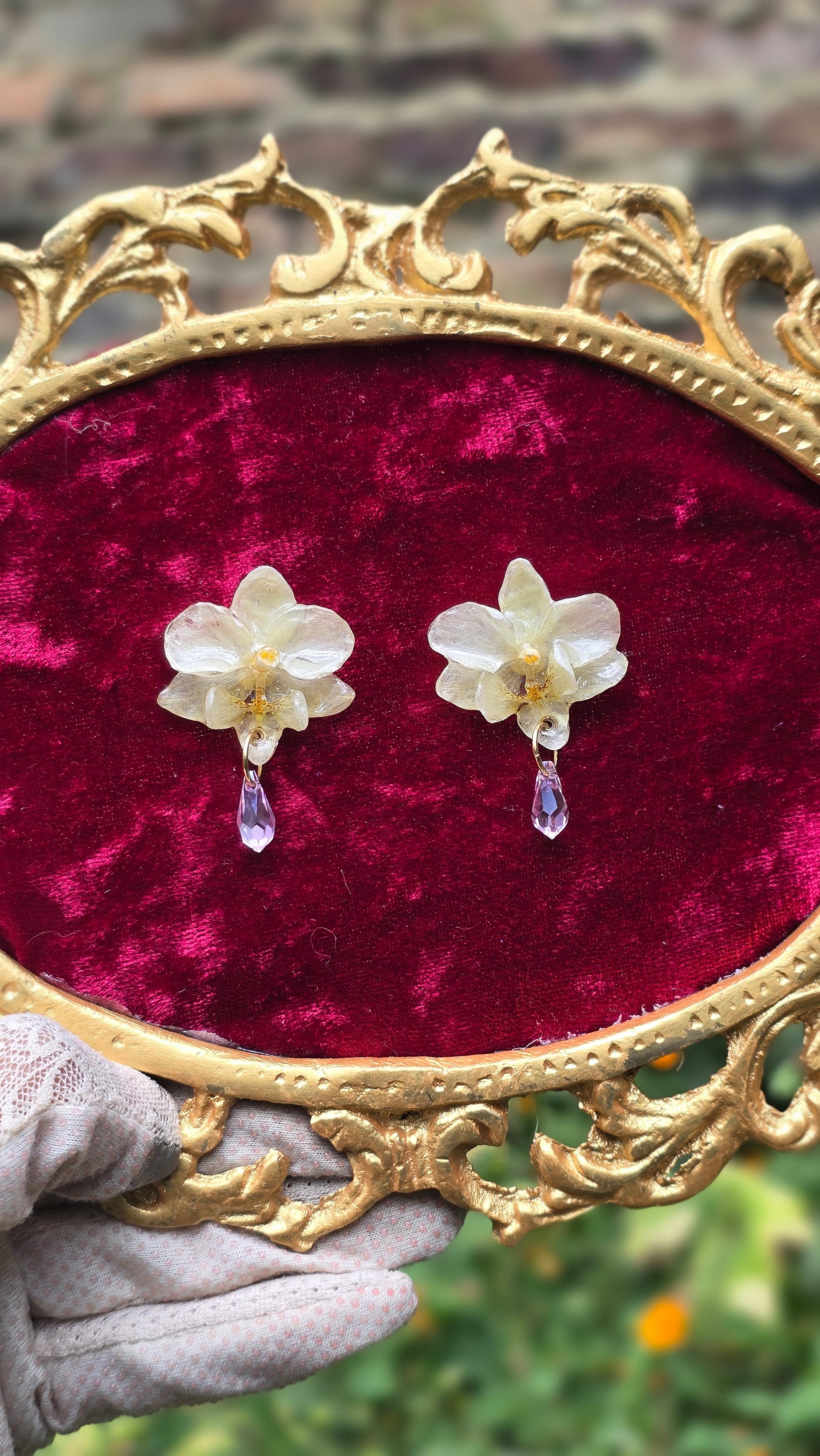 Aretes topitos con Orquídeas Phalaenopsis reales.