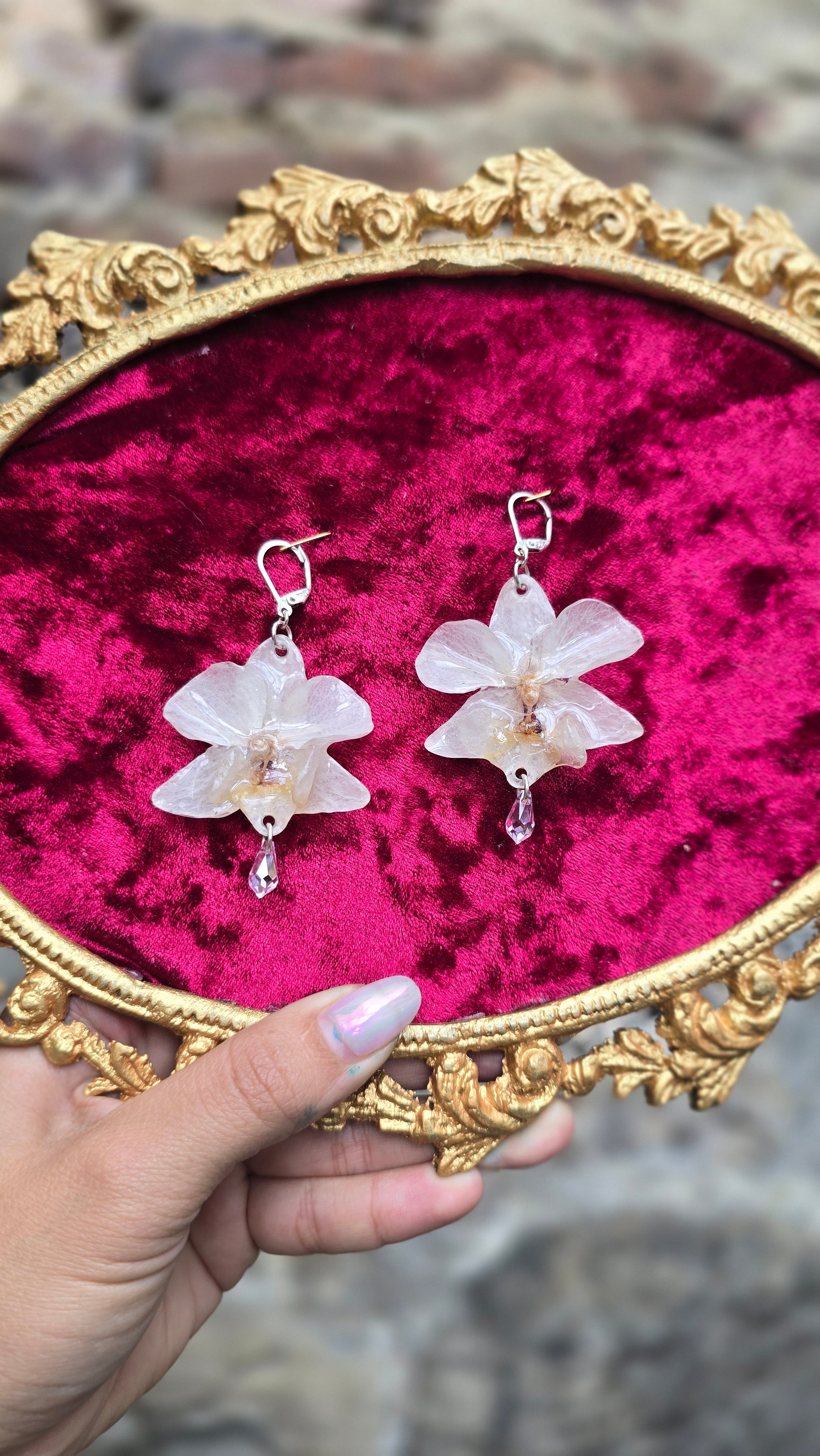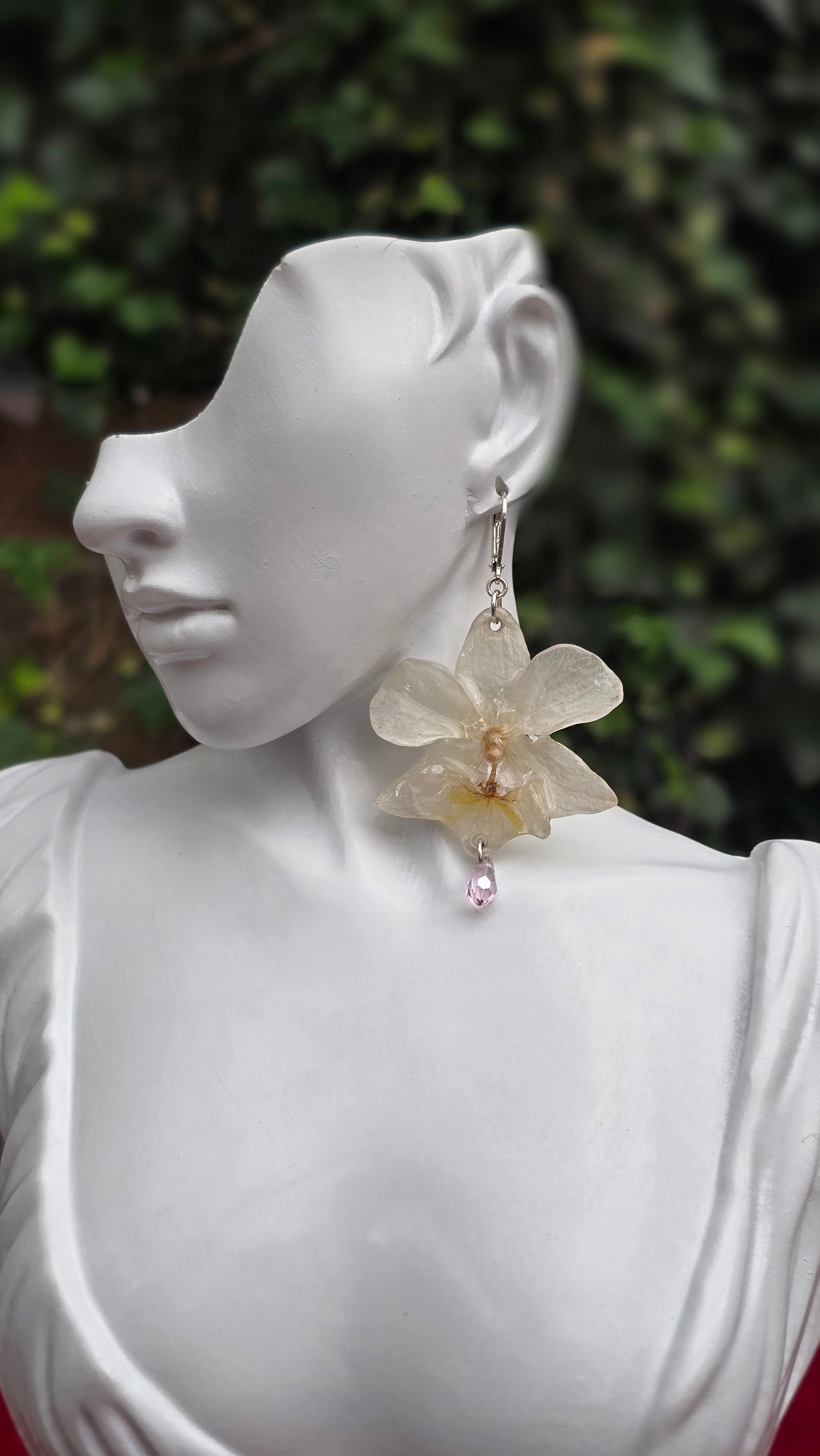 Aretes con Orquídeas Phalaenopsis reales.