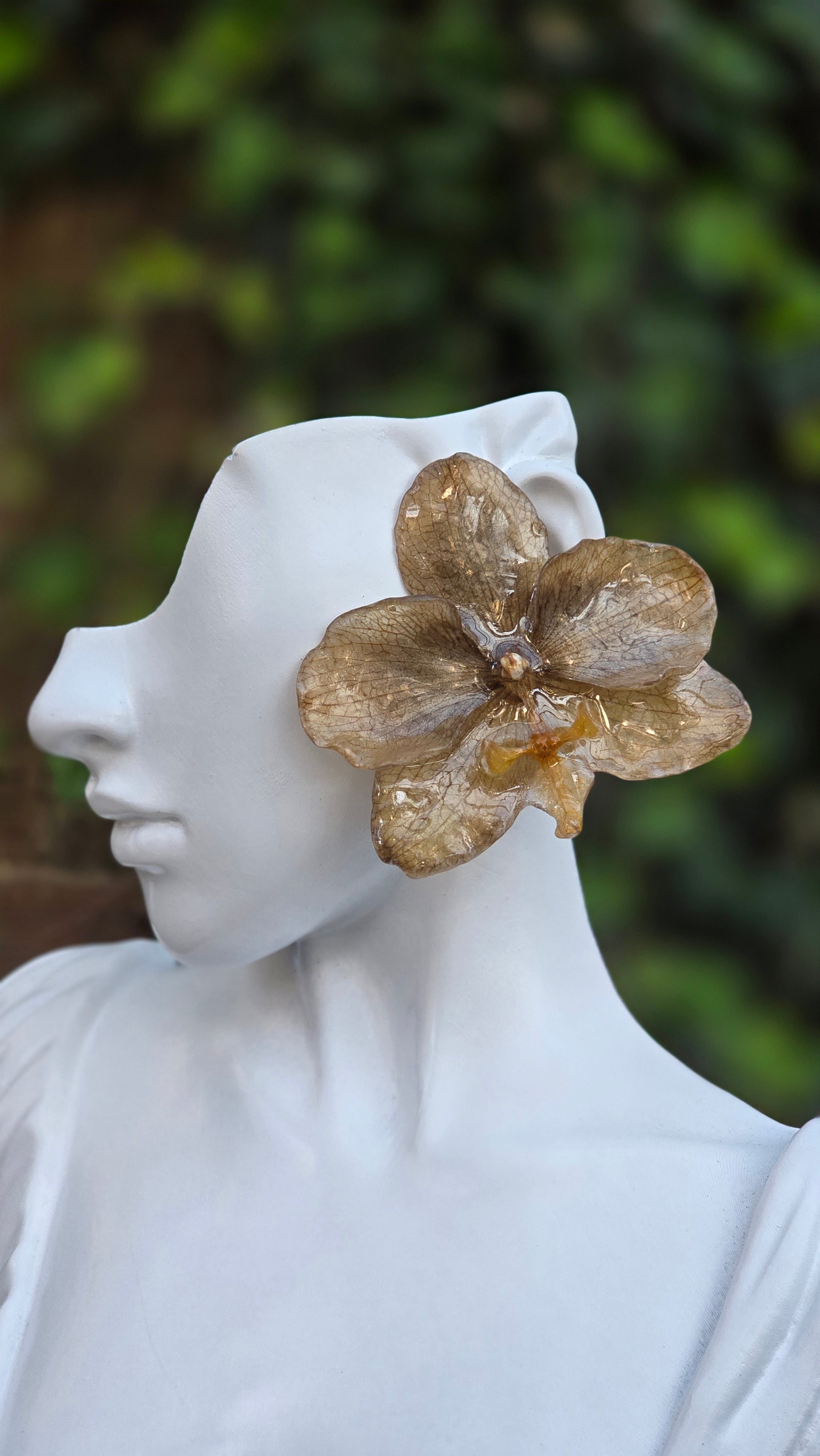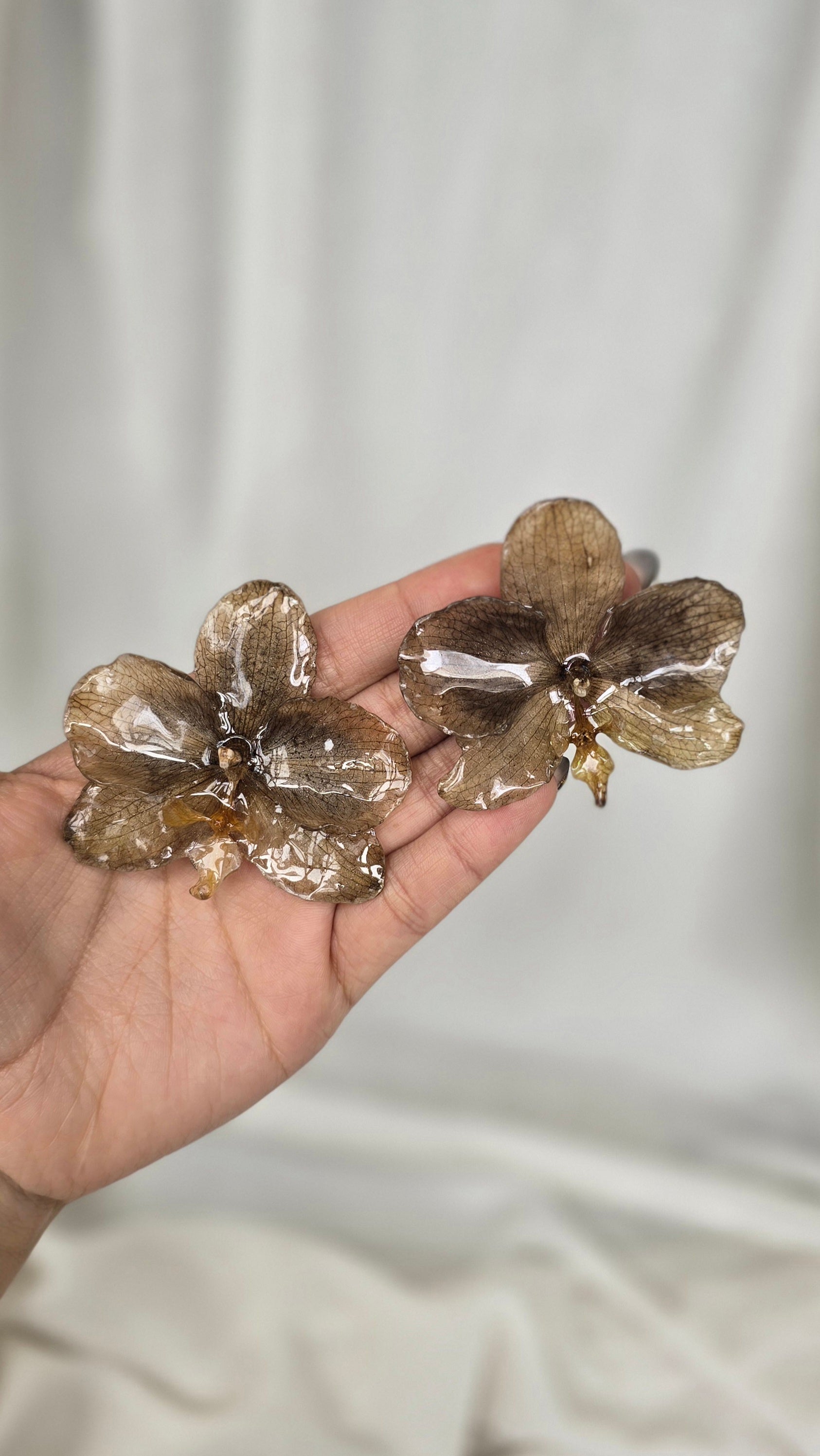 Aretes topitos con Orquídeas Phanelopsis reales.