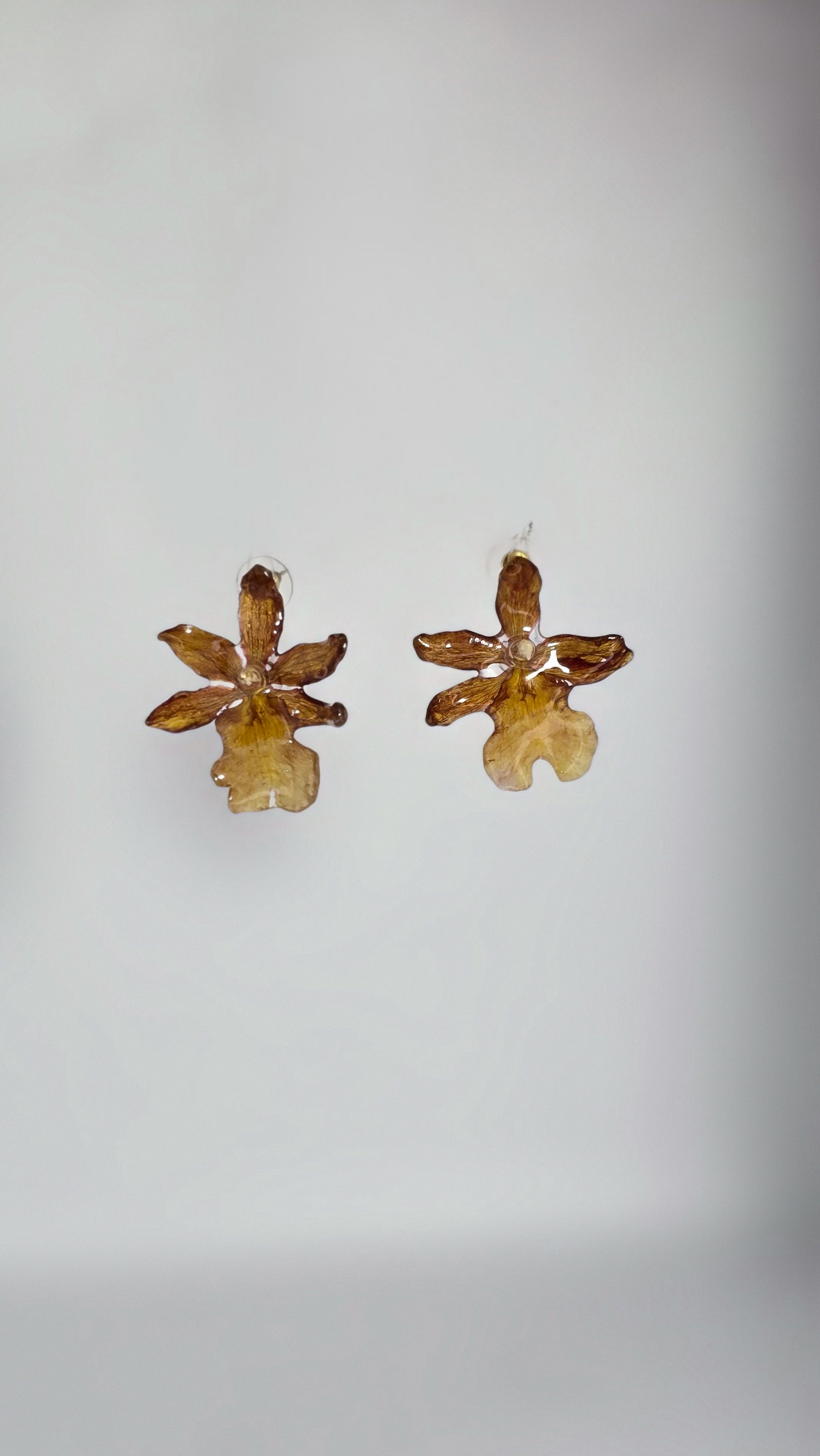 Aretes topitos de orquídeas únicas, elaborados con flores naturales preservadas cuidadosamente para capturar su belleza y elegancia ✨️🌸 herrajes en acero inoxidable. Con unas dimensiones de 4 cm de alto por 4 cm de ancho (medidas con herrajes) y un peso de 5 gramos (par). Ofrece un ajuste cómodo y ligero, ideal para cualquier ocasión.