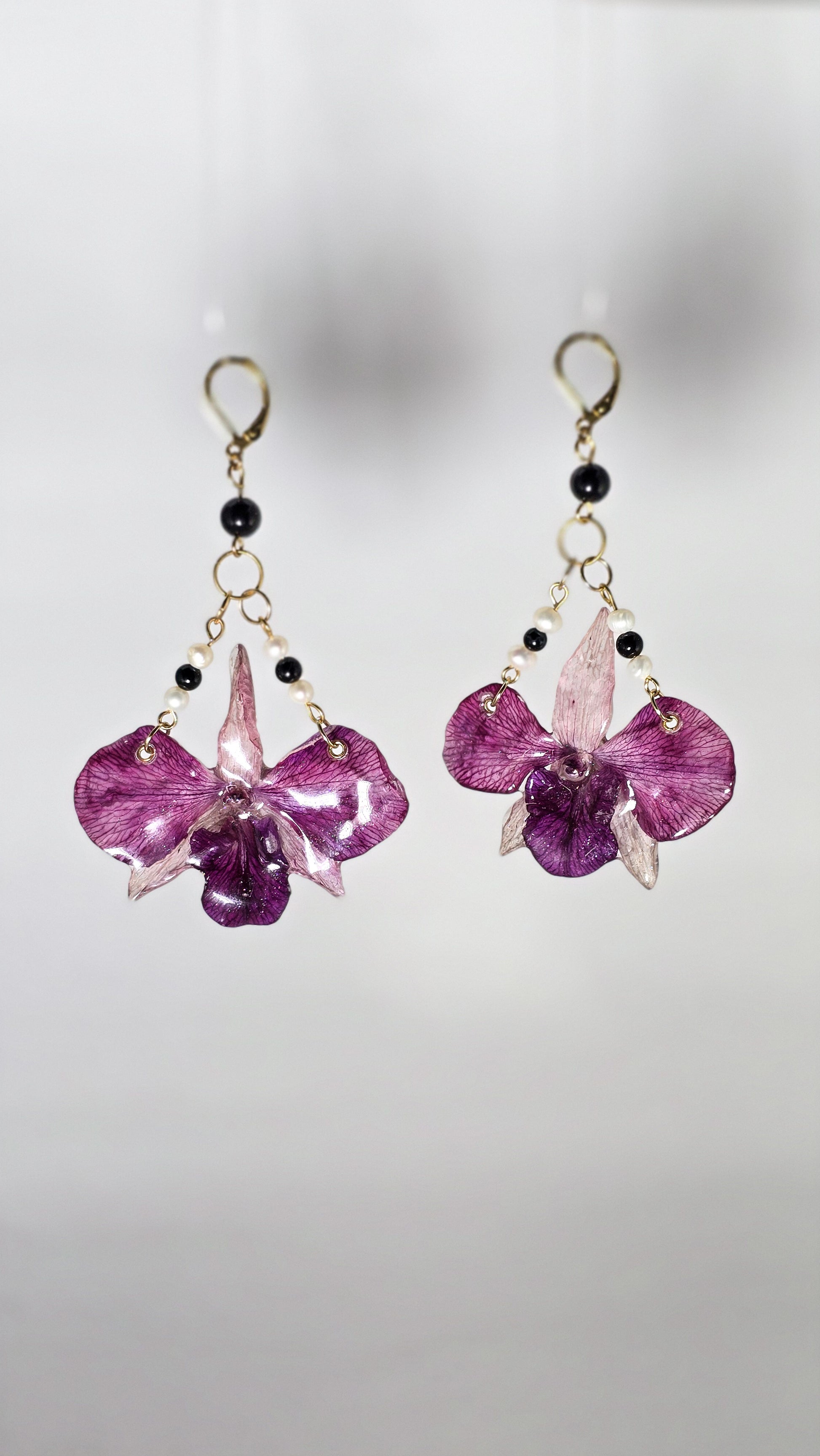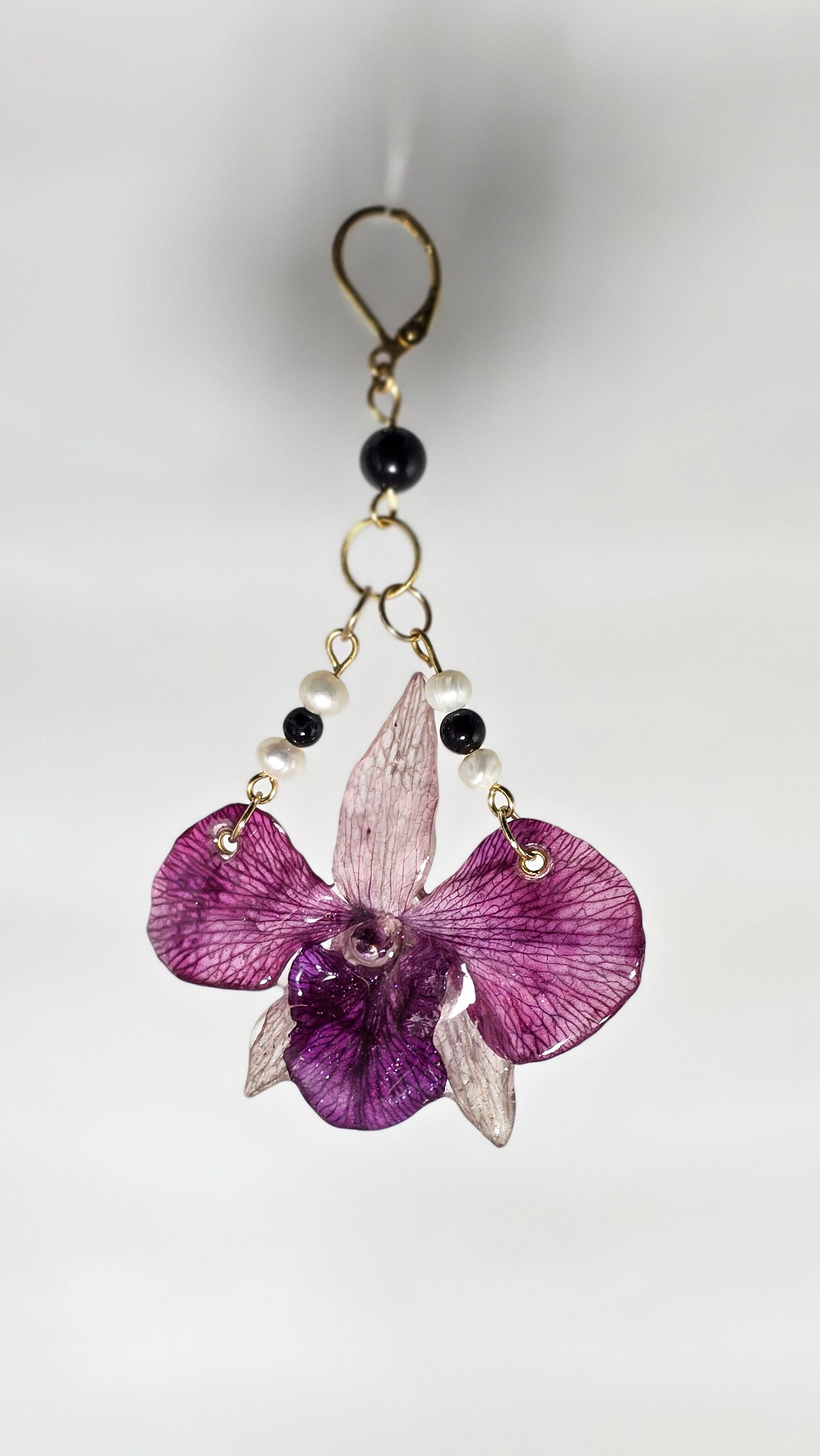 Aretes de orquídeas únicas, elaborados con flores naturales preservadas cuidadosamente para capturar su belleza y elegancia ✨️🌸 herrajes en acero inoxidable. Con unas dimensiones de 4,5 cm de alto por 5.5 cm de ancho (medidas con herrajes) y un peso de 11 gramos (par) (las medidas son aproximadas). Ofrece un ajuste cómodo y ligero, ideal para cualquier ocasión.