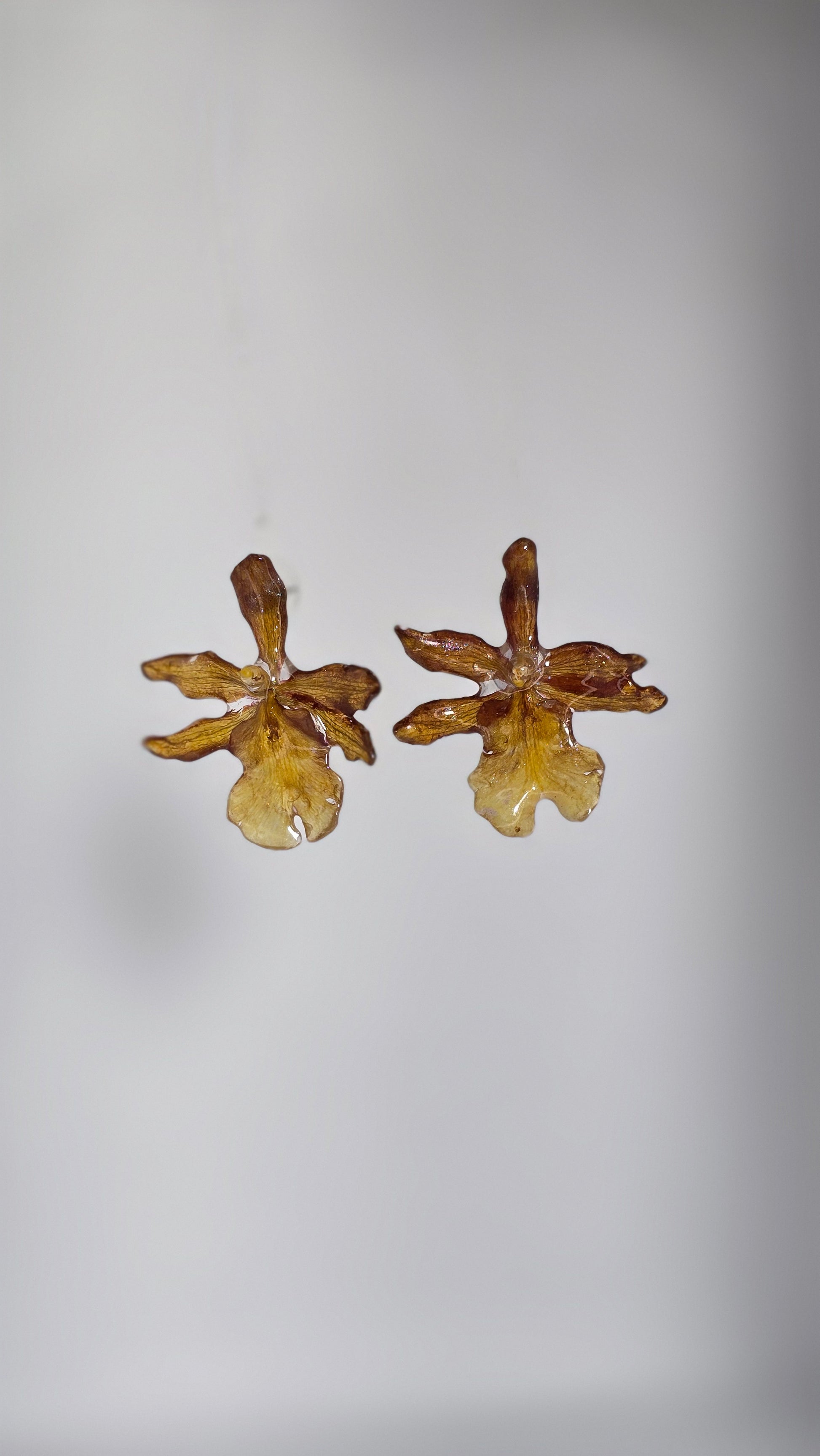 Aretes topitos de orquídeas únicas, elaborados con flores naturales preservadas cuidadosamente para capturar su belleza y elegancia ✨️🌸 herrajes en acero inoxidable. Con unas dimensiones de 4 cm de alto por 4 cm de ancho (medidas con herrajes) y un peso de 5 gramos (par). Ofrece un ajuste cómodo y ligero, ideal para cualquier ocasión.