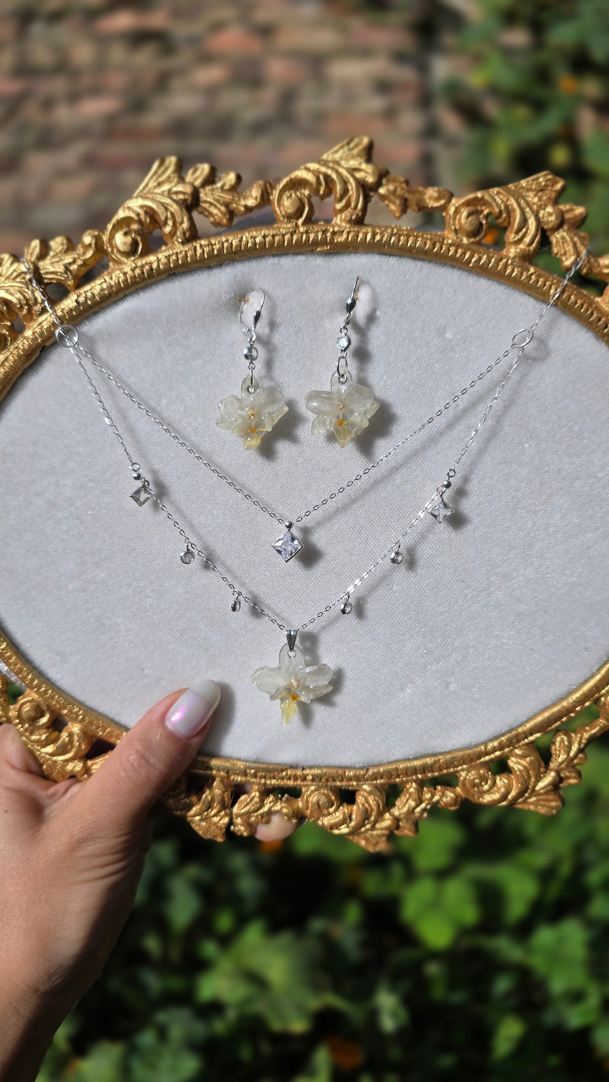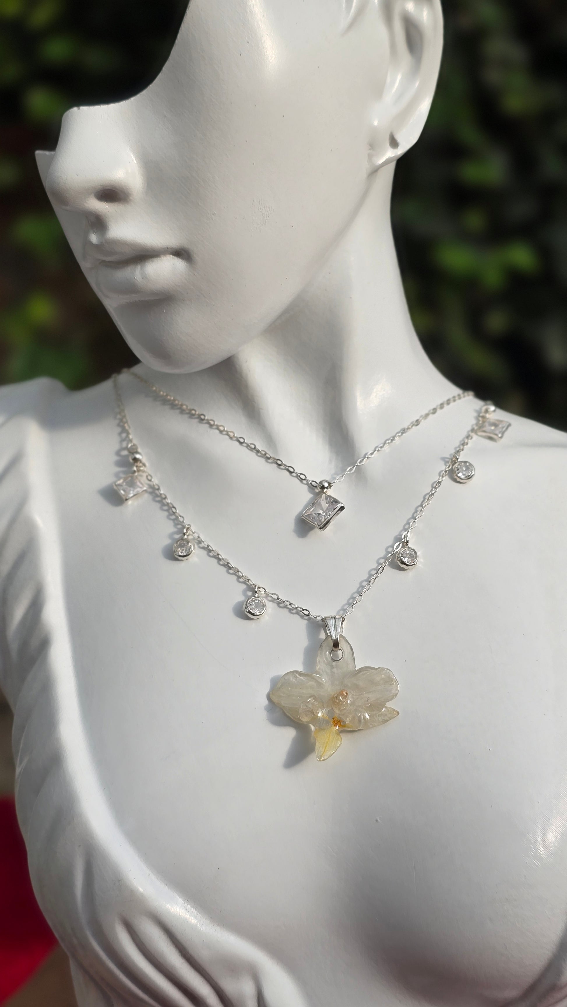 Dimensiones de la flor del collar 3 cm de alto por 2,5 cm de ancho y un peso de 5 gramos. Medidas aproximadas con herrajes y flor) Medidas de la cadena 45 cm de largo.