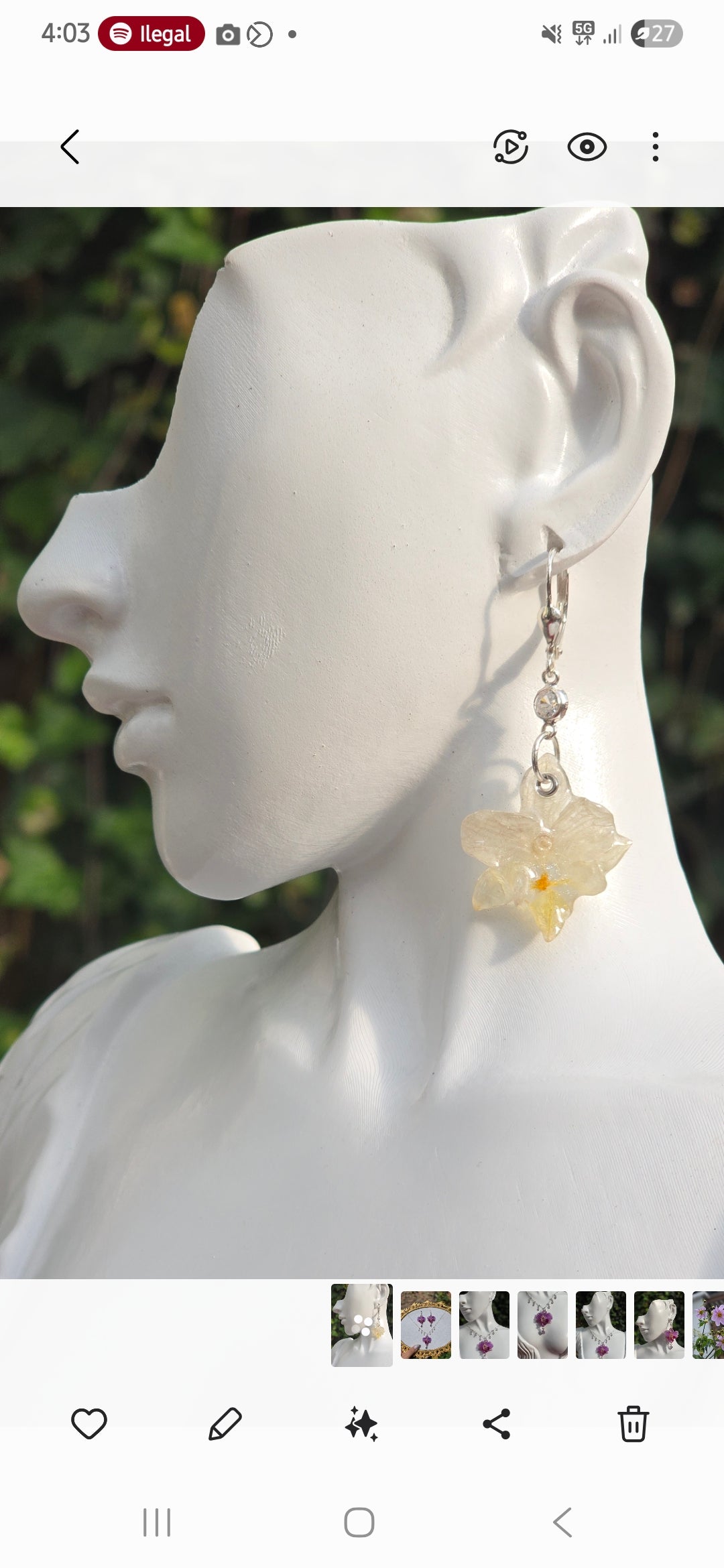 Dimensiones de la flor de los aretes 4,5 cm de alto por 2 cm de ancho y un peso de 3 gramos. Medidas aproximadas con herrajes y flor).