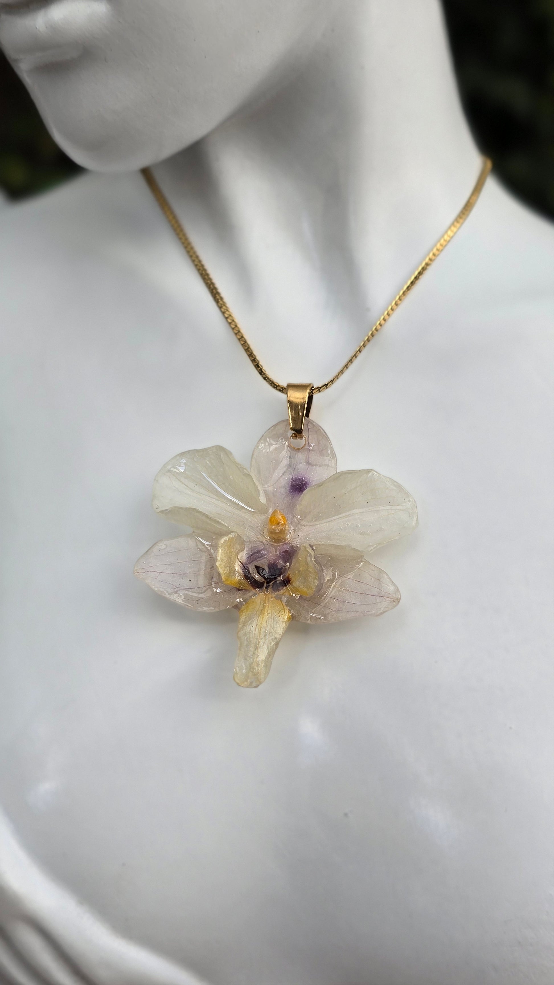 Dimensiones de la flor del collar 4,5 cm de alto por 4 cm de ancho y un peso de 6 gramos. Medidas aproximadas con herrajes y flor) Medidas de la cadena 45 cm de largo.