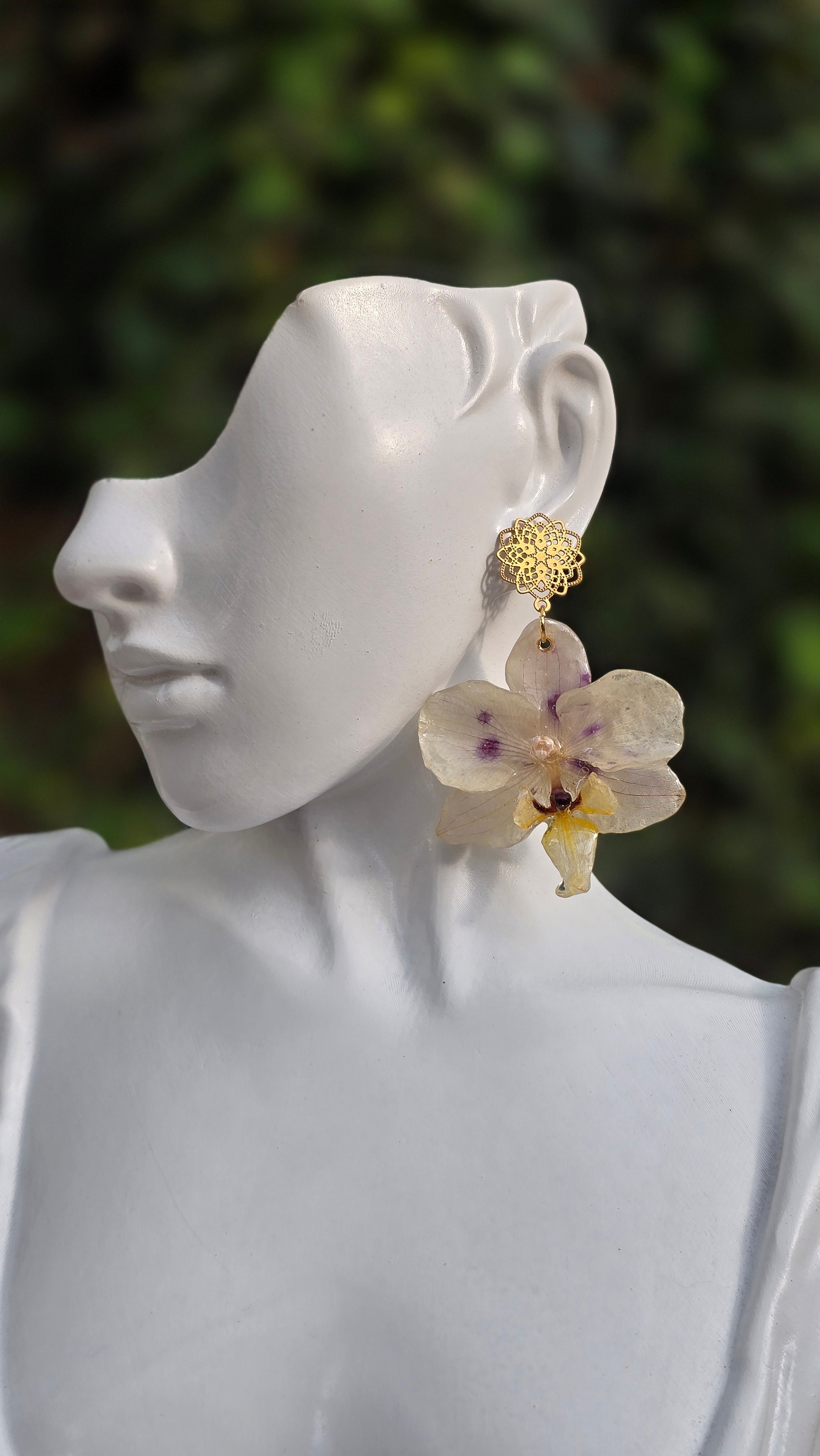 Dimensiones de la flor de los aretes 5,5 cm de alto por 4 cm de ancho y un peso de 8 gramos. Medidas aproximadas con herrajes y flor).