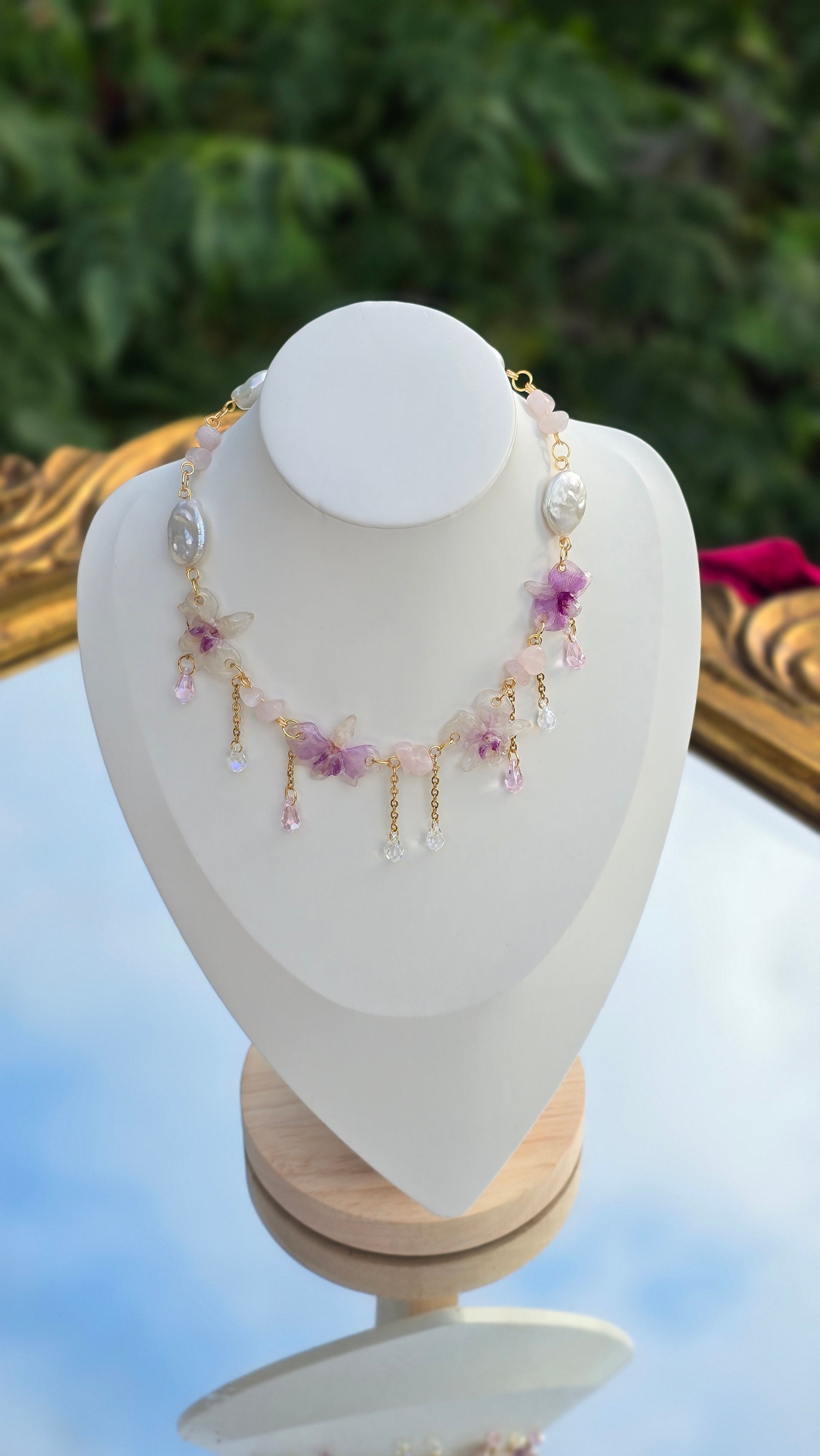 Collar con orquídea Phalacpnosis real, preservada en resina.